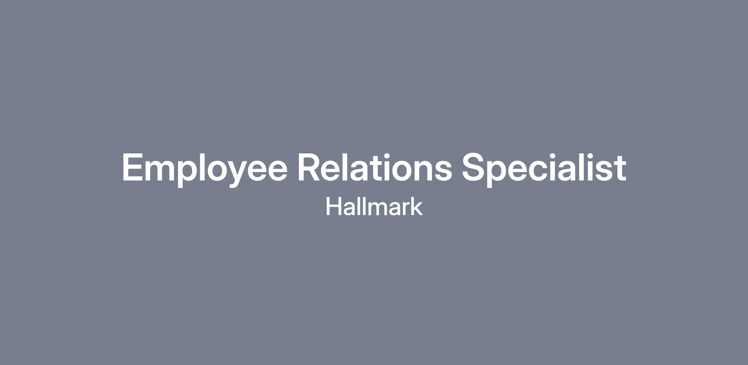 The Employee Relations (ER) team focuses on ensuring Hallmark's employment policies and practices support a positive environment and productive culture and helps managers and employees work within those policies and practices to produce outstanding results. The ER team plays a key role in ensuring that Hallmark's workplace, culture, and policies remain second-to-none, and that employee and manager concerns are addressed in a timely and appropriate fashion.