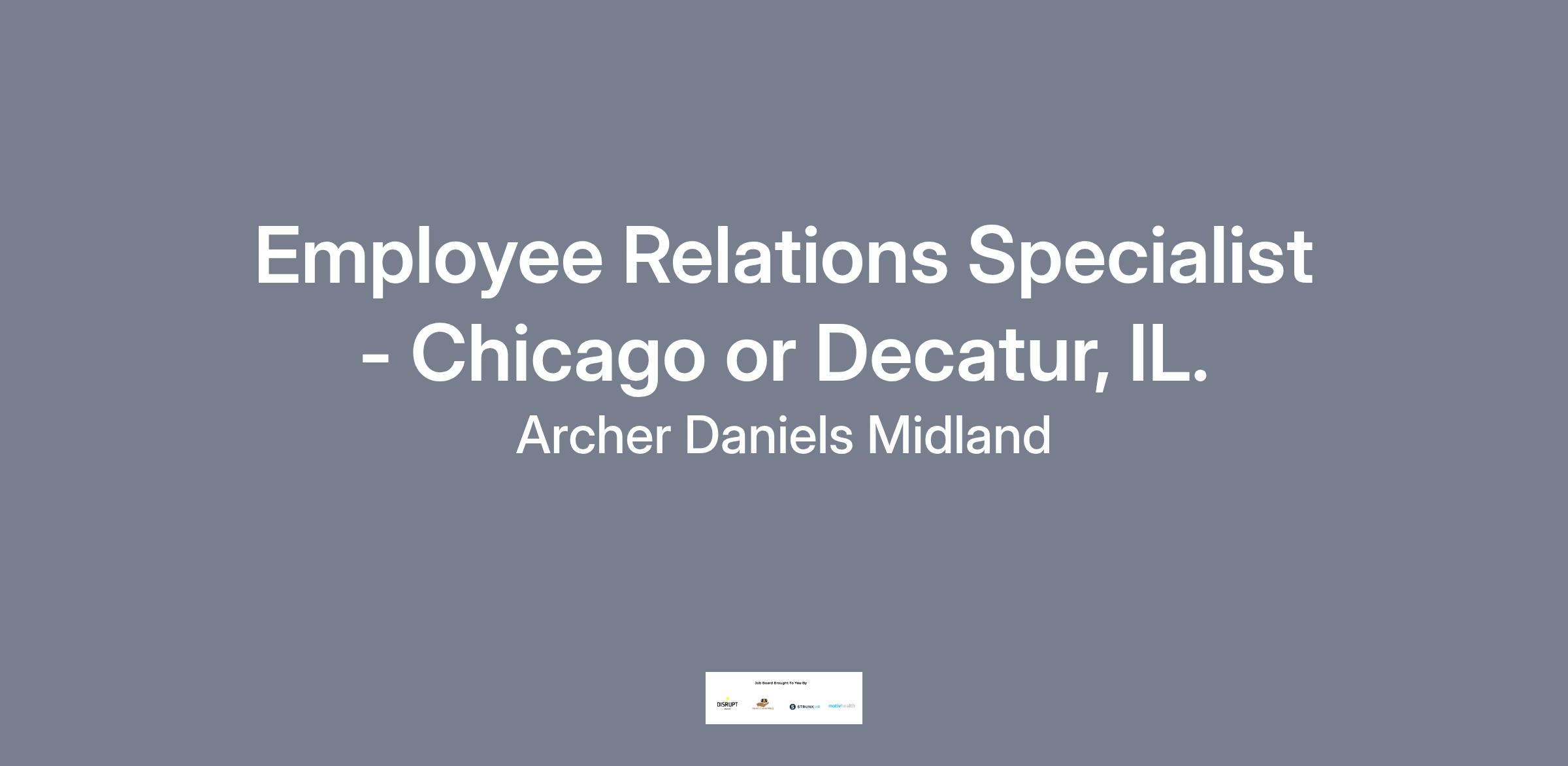 Employee Relations Specialist - Chicago or Decatur, IL.Job OverviewThe Employee Relations Specialist will be an integral part of the North America Employee Relations team at ADM. This position is responsible for addressing employee relations matters ranging from advising on performance management issues, policy violations, and interpretation to investigating and resolving employee complaints related to Title VII and other workplace issues. This role requires the ability to analyze basic to sophisticated information, develop valued fact-based conclusions using a variety of resources and techniques, and present findings to all levels of management and leadership.