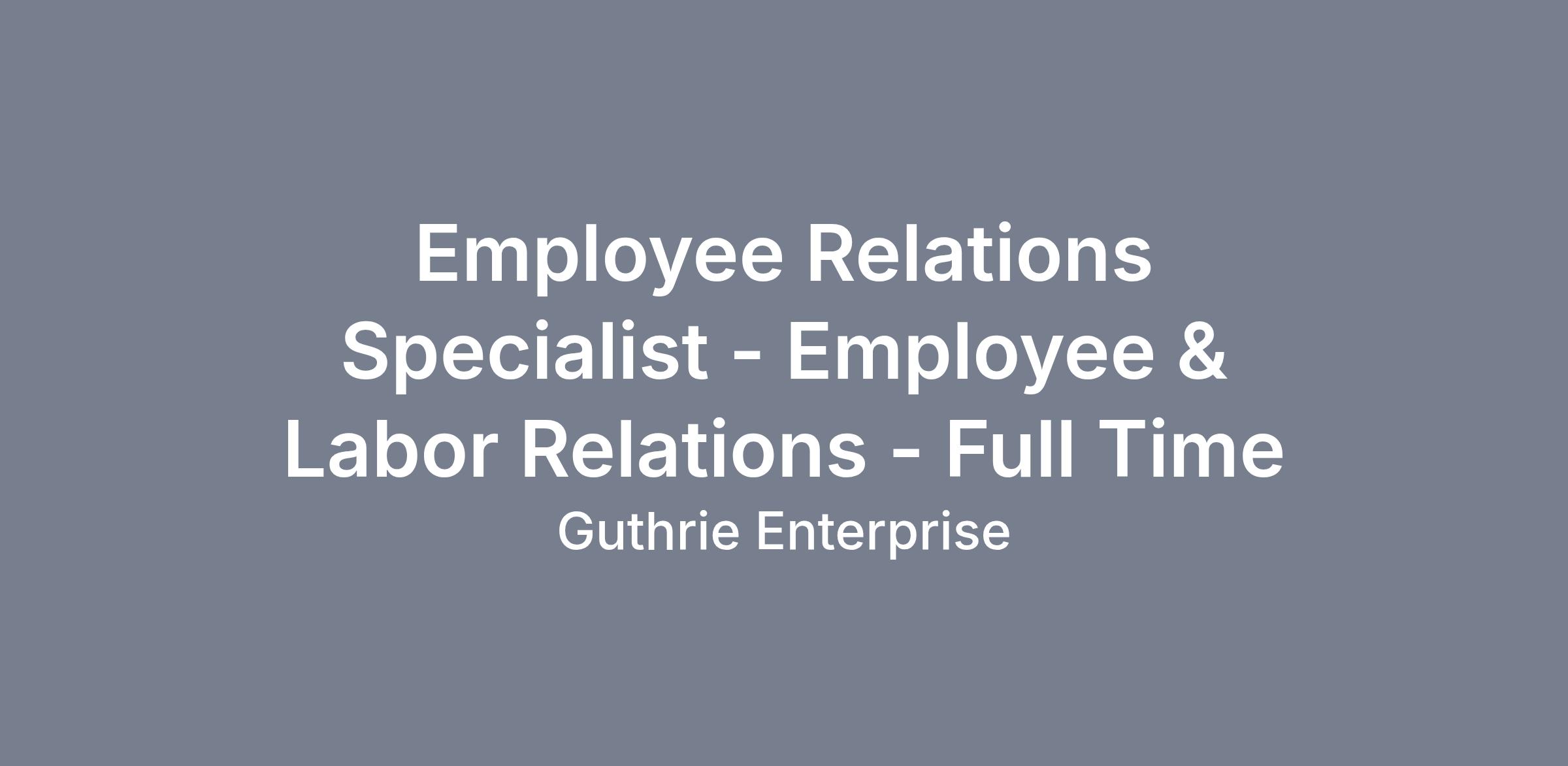 The Employee/Labor Relations Specialist collaborates with Sr. Director of Employee and Labor Relations to provide expertise and guidance to all levels of management related to employee and labor relations issues.