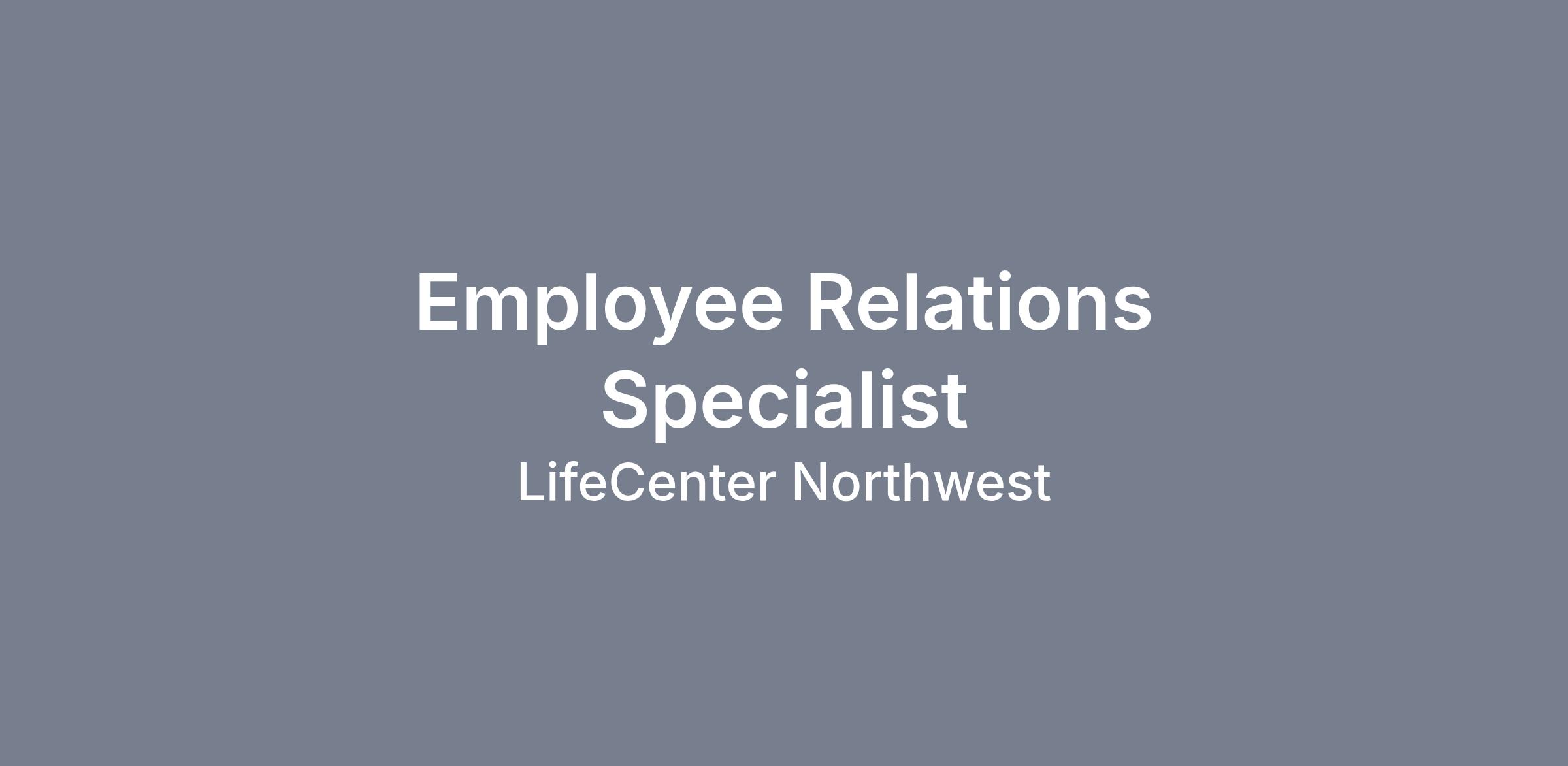 DescriptionThe Employee Relations Specialist is responsible for promoting and fostering a positive employer-employee relationship and work environment by partnering with leaders and working directly with employees to resolve issues and provide guidance on employee policies and practices. The Employee Relations Specialist will build strong partnerships with leaders to advise and consult on managing disciplinary matters, including performance management, while ensuring fair treatment and compliance with company policies and employment laws. The Employee Relations Specialist conducts investigations and resolves employee complaints, grievances, and conflicts. The Employee Relations Specialist works collaboratively across the People Resource (PR) team to develop and implement policies, practices and strategies, and trainings that uphold the organizational values and help to foster a culture of inclusivity that supports the overall mission of LifeCenter Northwest.