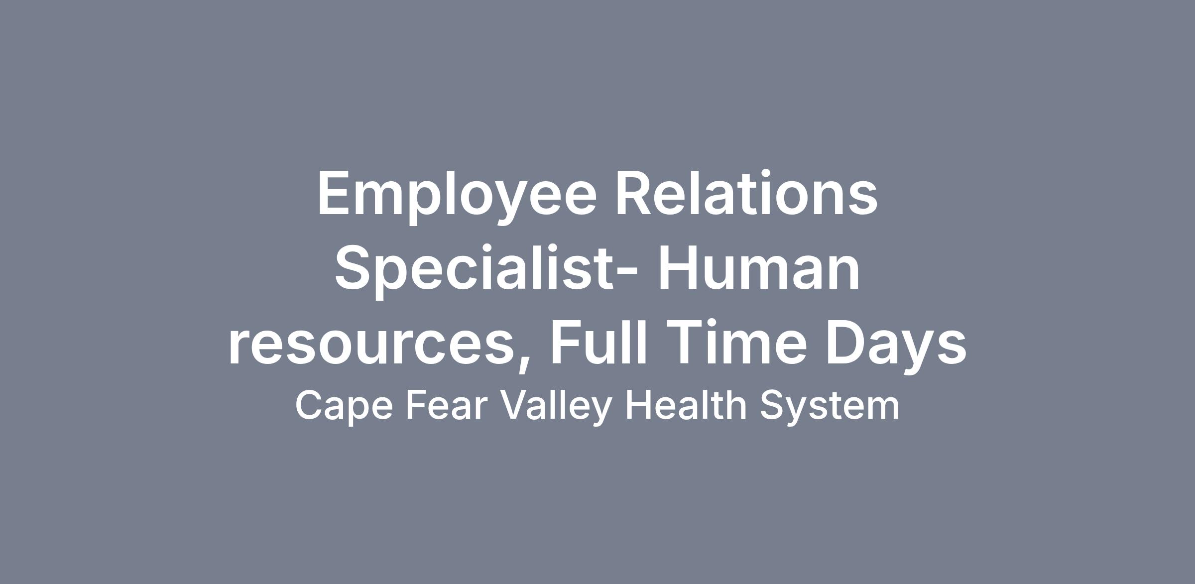 Cape Fear Valley Health System is an Equal Opportunity Employer M/F/Disability/Veteran/Sexual Orientation/Gender Identity