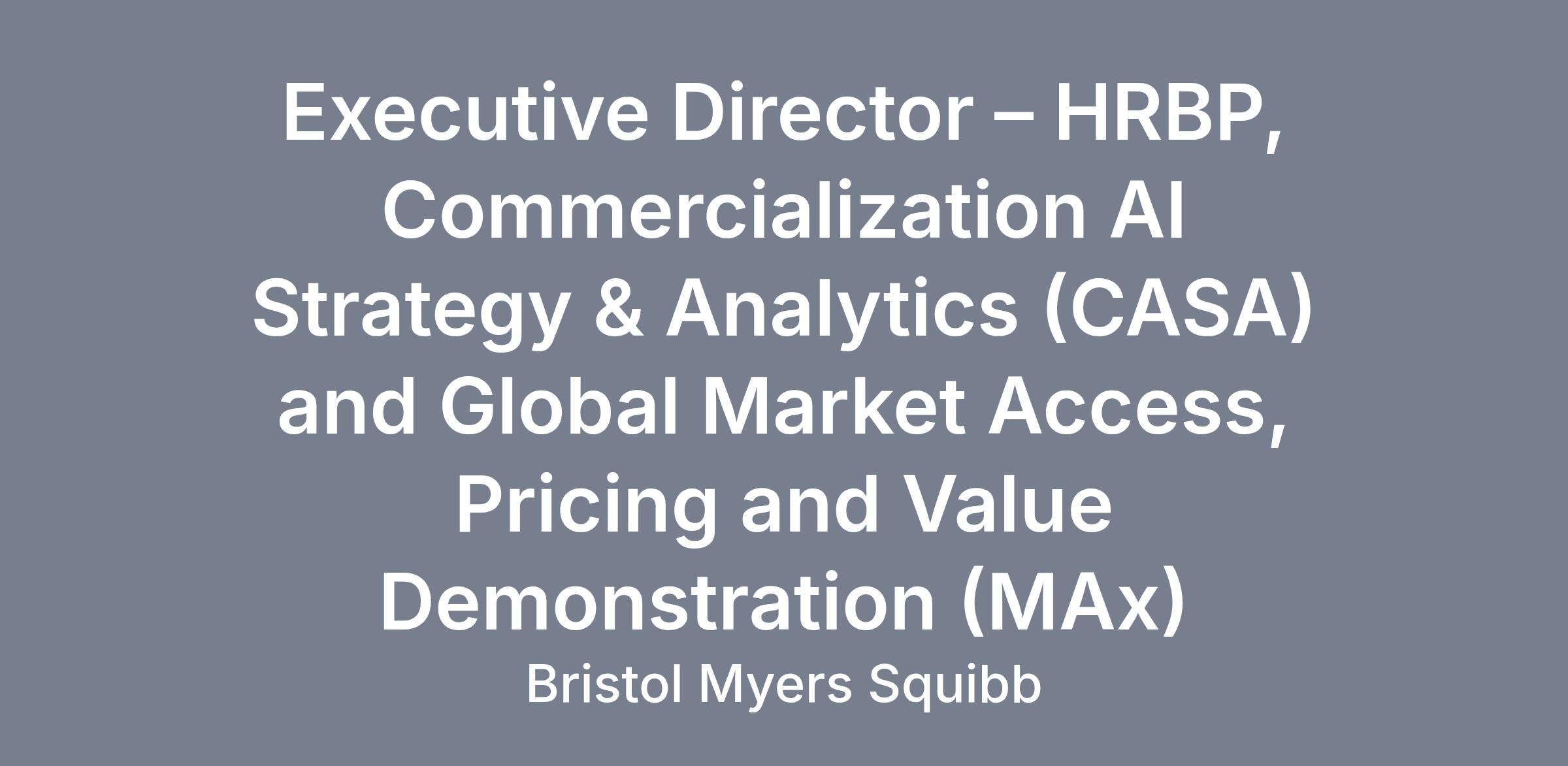 R1600740 : Executive Director – HRBP, Commercialization AI Strategy & Analytics (CASA) and Global Market Access, Pricing and Value Demonstration (MAx)