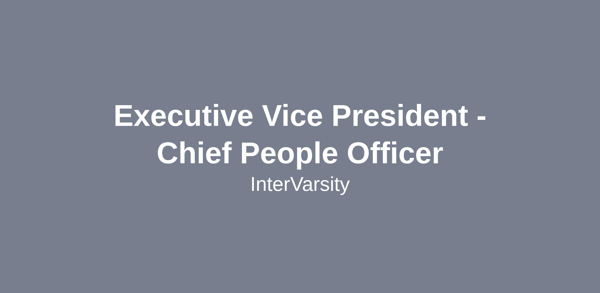 To advance the purpose of InterVarsity, the Chief People Officer will serve as a strategic executive leader responsible for developing and executing a comprehensive people strategy that integrates Human Resources, Diversity, and organizational development to advance the ministry's mission. Reporting directly to the President/CEO and serving as a member of the Executive Leadership Team, this role provides vision and leadership for all aspects of diversity, talent management, and workforce effectiveness across the Fellowship.