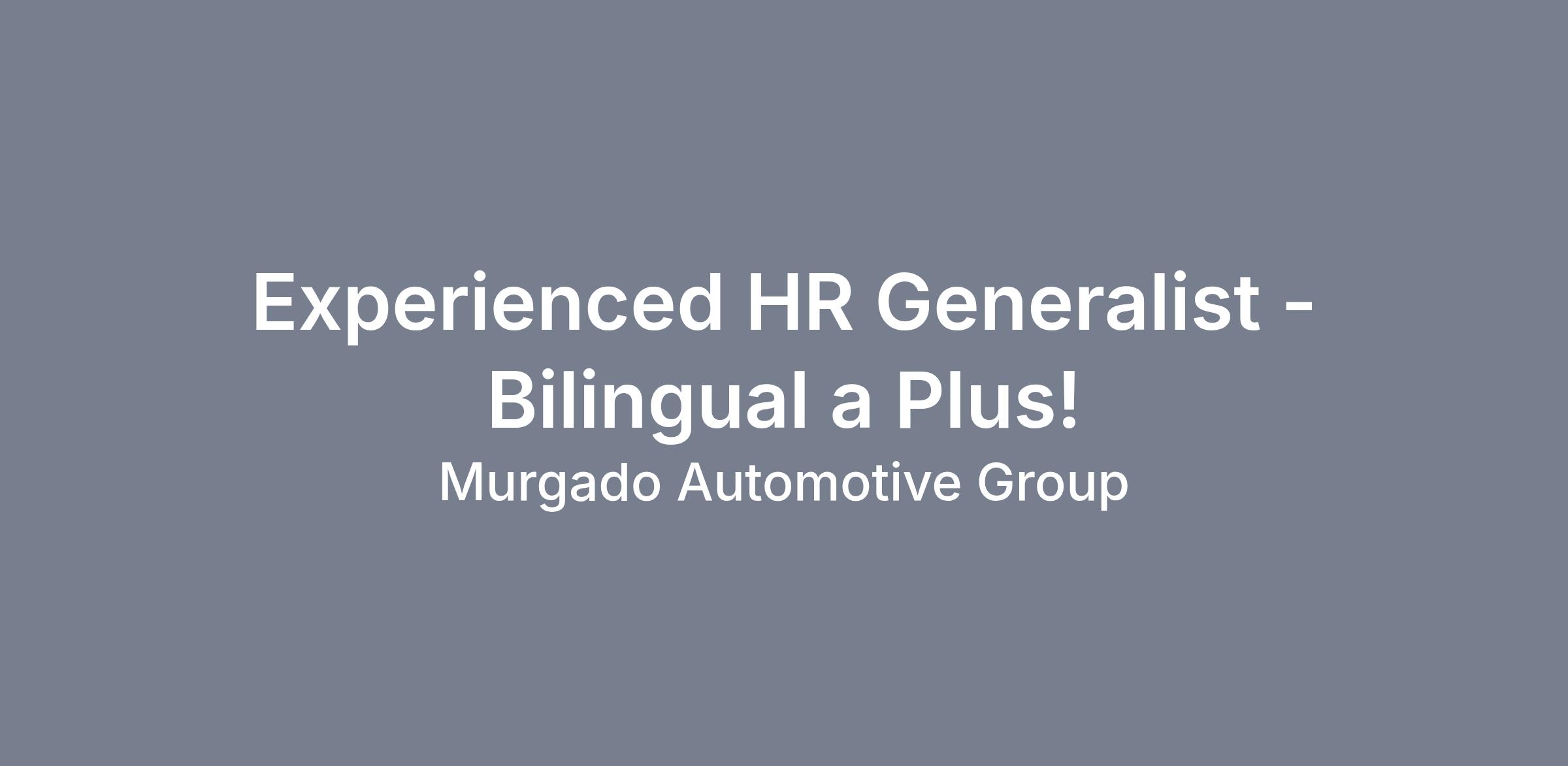 A leading automotive dealership group with locations across five states is seeking a dynamic and motivated Human Resources Generalist to join our team in the automotive retail industry, based in Chicago IL. We are committed to providing exceptional service to our customers and creating a supportive and inclusive work environment for our employees.