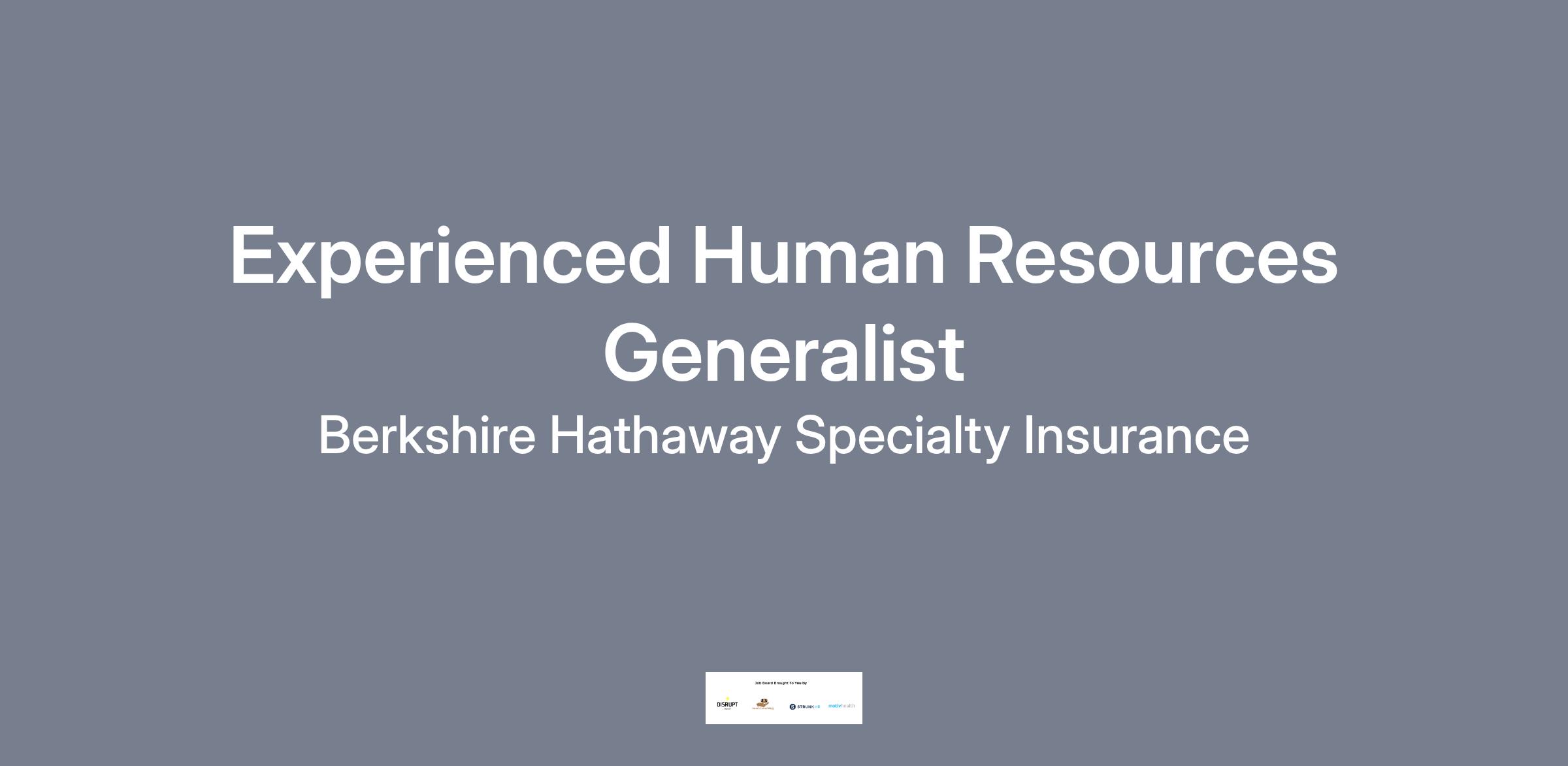 Berkshire Hathaway Specialty Insurance (BHSI) has an exciting opportunity for an experienced Human Resources Generalist, who is driven, passionate, and ready to roll up their sleeves, to join our business facing, customer service oriented, Boston based HR Team. This is a great opportunity for someone who thrives in a fast-paced environment, is self-motivated with a can-do attitude, has a high degree of care and excellence in all things they do, and wants to further develop their skills to grow their HR career through involvement in all areas of human resources in a true generalist capacity.