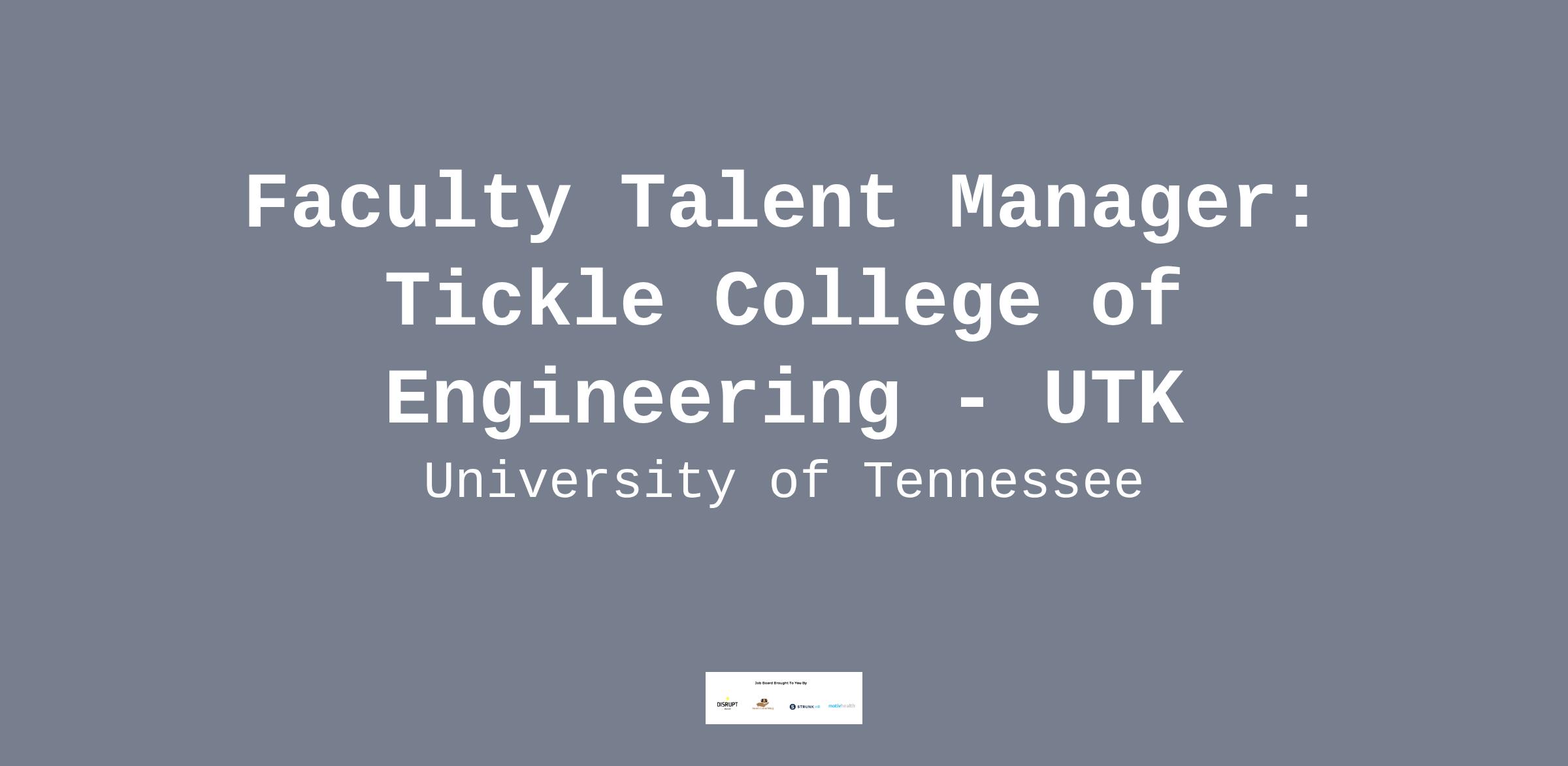 The Faculty Talent Manager in the Tickle College of Engineering is responsible for developing and maintaining comprehensive faculty talent management programs. This position drives faculty recruitment and retention efforts, external awards nominations, professional development, and compensation strategies.