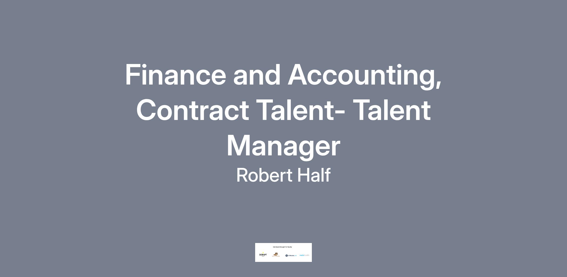 Finance and Accounting, Contract Talent- Talent ManagerLOCATION
