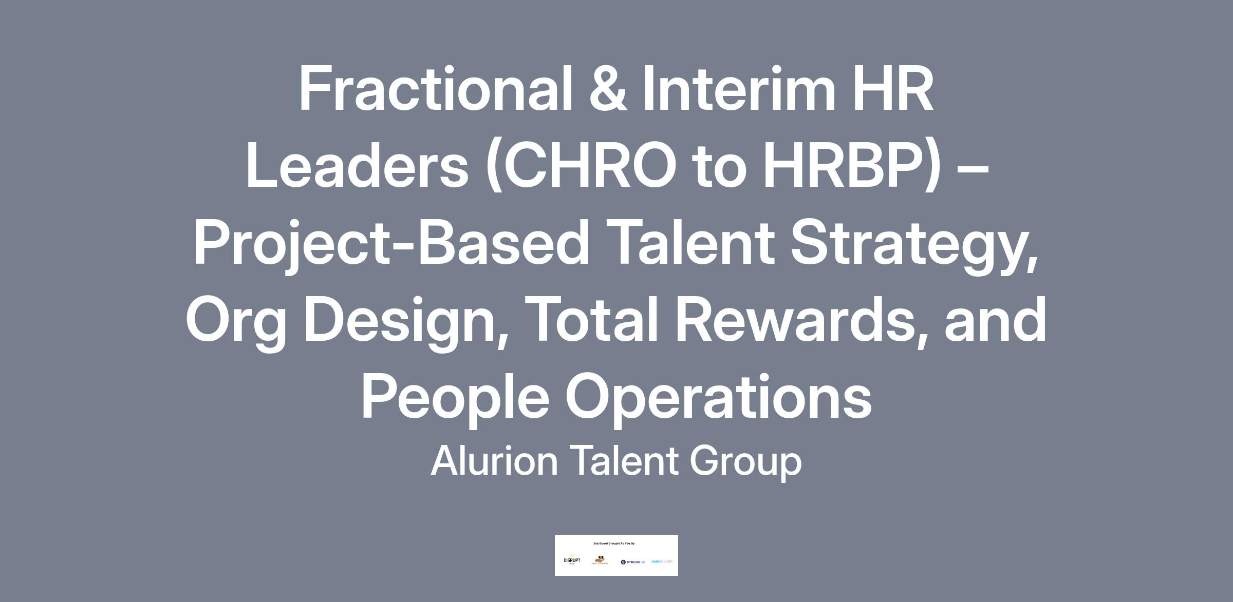 Alurion Talent Group partners with mission-driven organizations to deliver expert HR consulting and fractional leadership talent across healthcare, behavioral health, and life sciences. We are expanding our network of exceptional HR professionals available for project-based, interim, or fractional roles supporting our clients in moments of growth, transformation, or transition. We are especially interested in healthcare industry experts and HR consultants who bring specialized knowledge as subject matter experts (SMEs) and can advise and execute within complex, evolving environments.