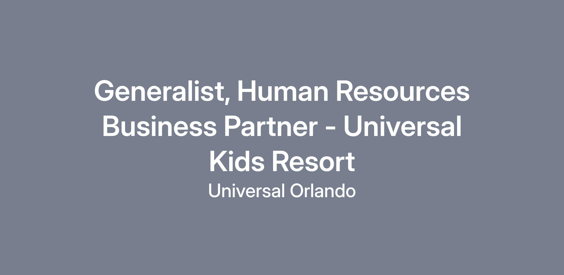 Provides HR counsel and support to leadership and hourly Team Members, with heavy emphasis on maintaining positive employee relations. Supports the execution of human resources activities related to reporting, communication, analysis, placement, and overall HR guidance for assigned client groups. Serves as a liaison with other HR departments across Universal Kids Resort (UKR) and Universal Destinations and Experiences (UDX) including Talent Acquisition, Talent Development, Organizational Development, Payroll and Benefits, Compensation, Open Door and any other relevant UDX Centers of Excellence to manage and resolve issues as well as assist with HR process coordination. Represents the ‘face of HR’ to Team Members.