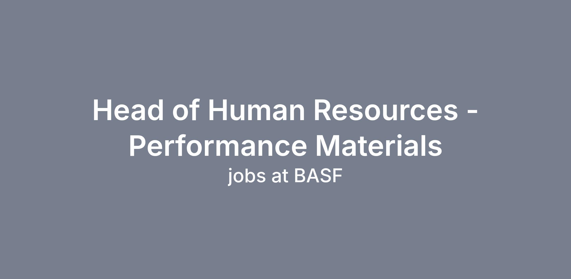 We are looking for a Head of Human Resources to join our Performance Materials (PM) team in Wyandotte, MI.