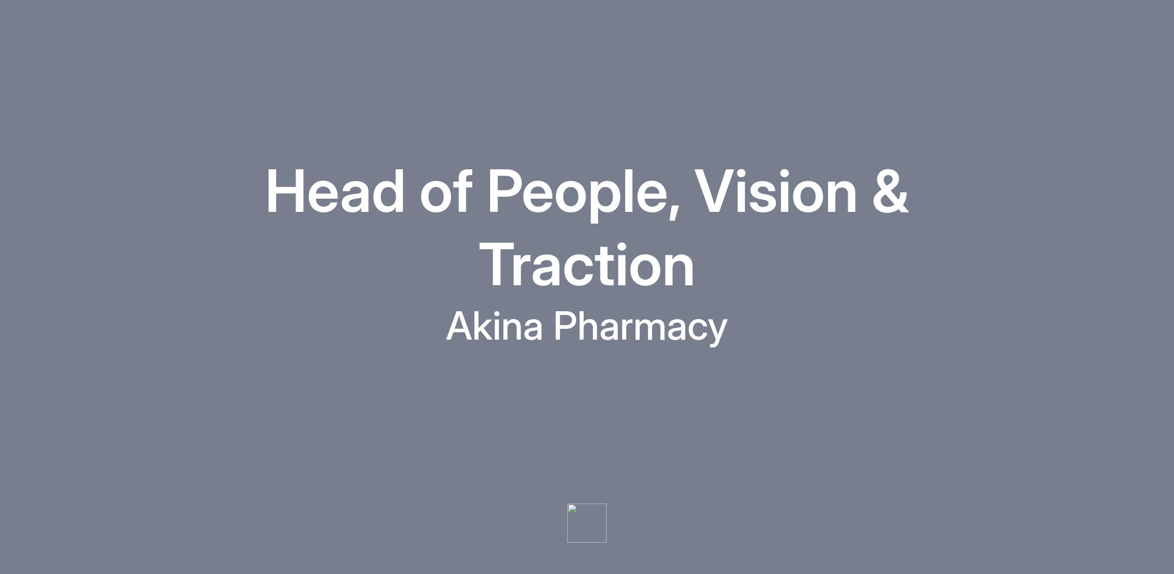 The Head of People, Vision & Traction (PVT) owns Akina’s entire people system and ensures our organization runs purely on EOS at every level. This role leads the five core functions of PVT—HR Operations, Talent Acquisition, Employee Engagement & Development, Culture Stewardship, and Leadership & Management Coaching. As Akina scales, this leader builds the systems, disciplines, and rhythms that keep our people aligned with our vision, connected to our culture, and performing at their highest level.