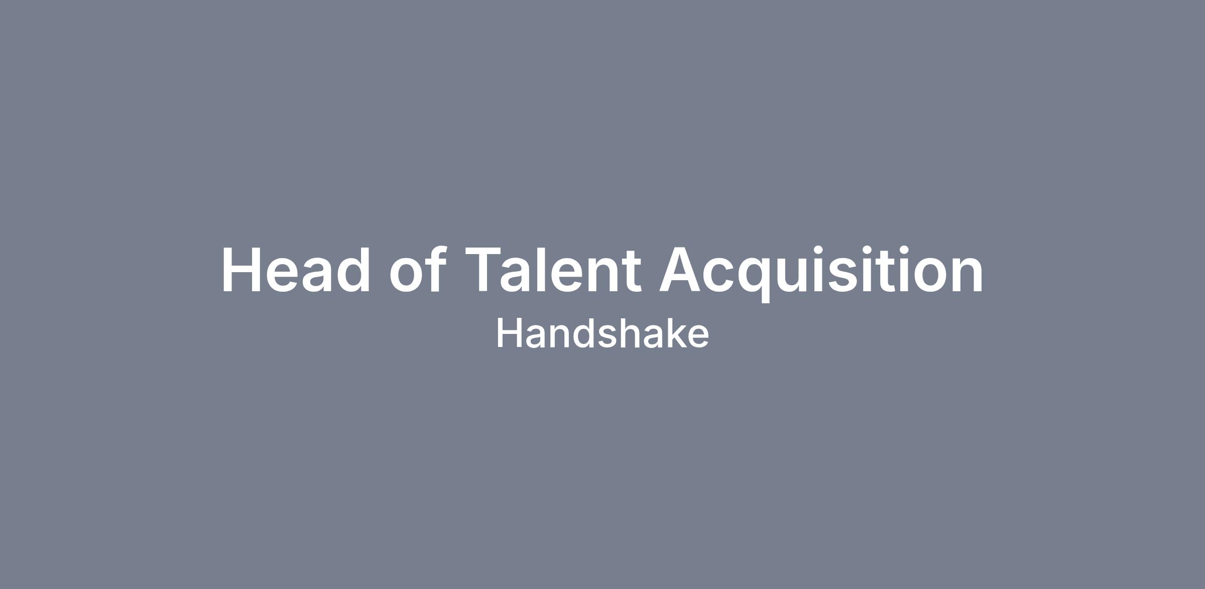 As the Head of Talent Acquisition at Handshake, reporting to the Head of People, you will own how we find and hire the people building the career network for the AI economy. This is a dual-mandate role: you'll lead full-cycle recruiting across the business while serving as a strategic advisor to the Growth team that recruits fellows for our HAI (Handshake AI) business. It requires both strategic vision and operational rigor: the ability to shape a talent brand that competes with the best companies in tech, while running a recruiting engine that actually delivers.