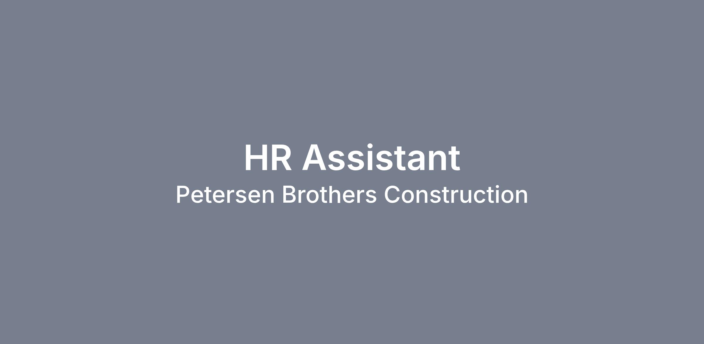 Petersen Brothers Construction (PBC) is looking for an HR Assistant to join our HR Team! A person in this position will perform administrative tasks to support the employees and management teams. The HR Assistant will primarily be responsible for recruitment and onboarding for PBC and Elite Restoration and is the first point of contact to all candidates. An ideal candidate enjoys helping others to ensure a positive workplace culture as well as interacting with new faces to ensure a great first day experience!