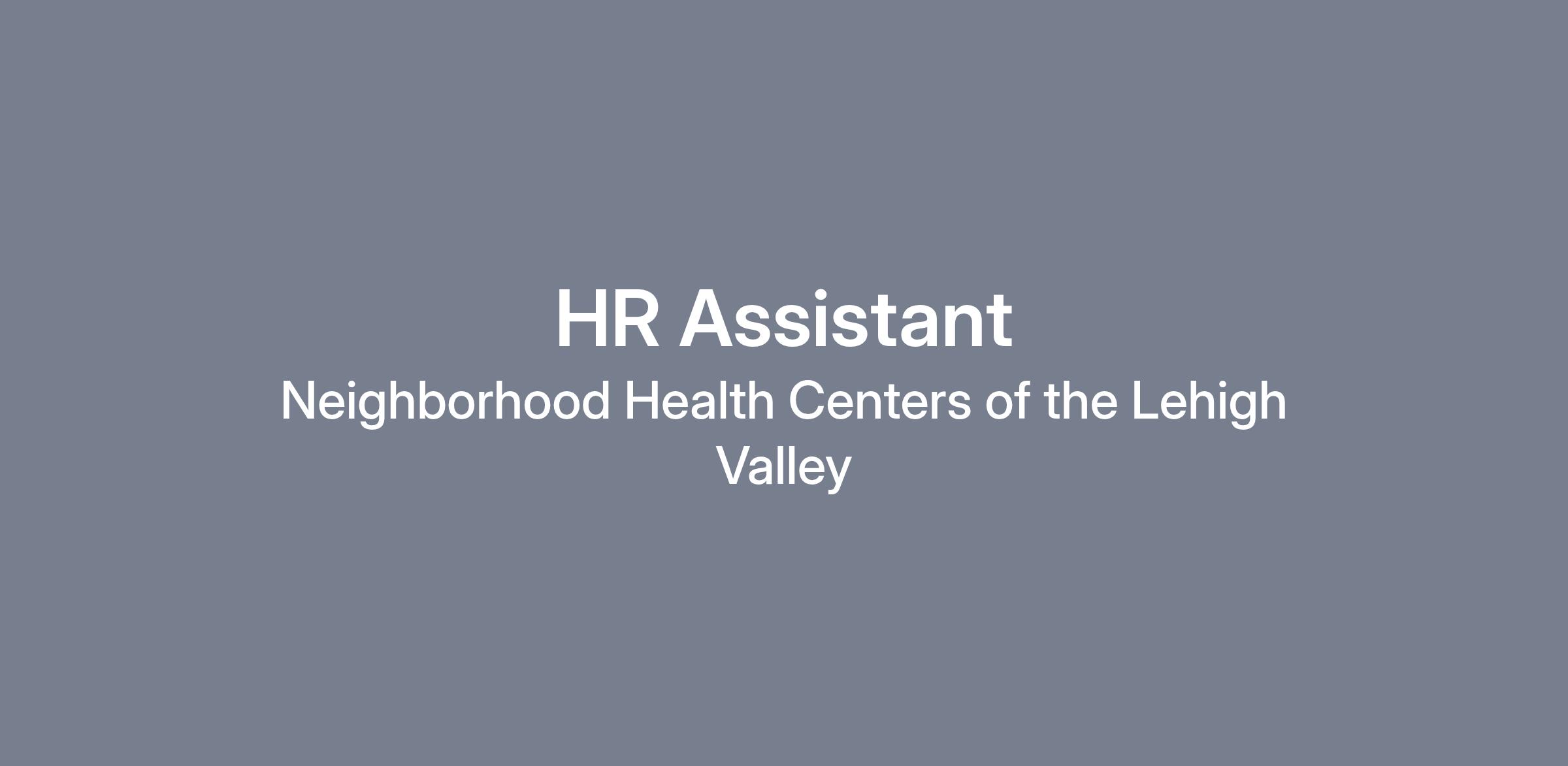 Neighborhood Health Centers of the Lehigh Valley is in search for a full-time HR Assistant to join their team. If you have experience in HR and are an outgoing, self-motivated individual with excellent attention to detail and loves working with people, this could be a great fit for you! The HR Assistant role is one that requires an individual who understands and adheres to maintaining the highest level of confidentiality at all times. The HR Assistant will help in all areas of the HR department including but not limited to performing a variety of administrative work, maintaining files, sorting mail, scanning, faxing, assisting with job descriptions, policies and procedures, contracts and offer letters, answering phones and checking messages for the department. HR Assistant will also be assisting with the recruitment, onboarding and hiring process as well as assisting with payroll. Please note that this is not a full list of essential functions.