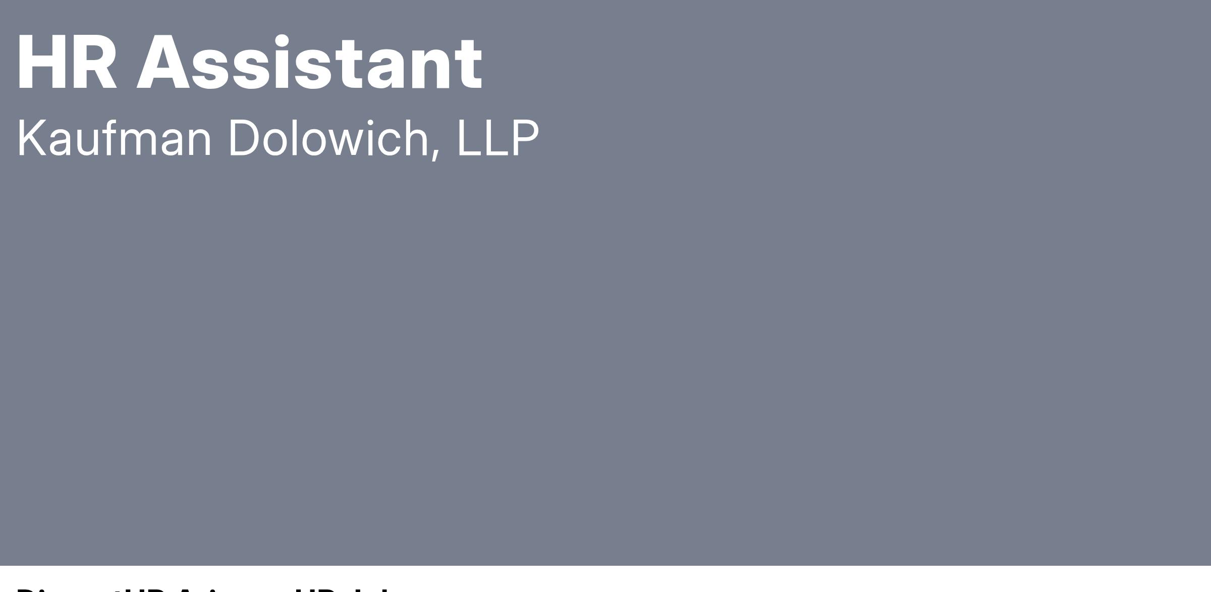 Kaufman Dolowich, recognized by U.S. news in their list of “Best Companies to Work For - Law Firms” is seeking an enthusiastic and detail-oriented Entry-Level HR Assistant to join our Human Resources team. This position offers an excellent opportunity to gain hands-on experience in various HR functions and contribute to the overall success of the department.