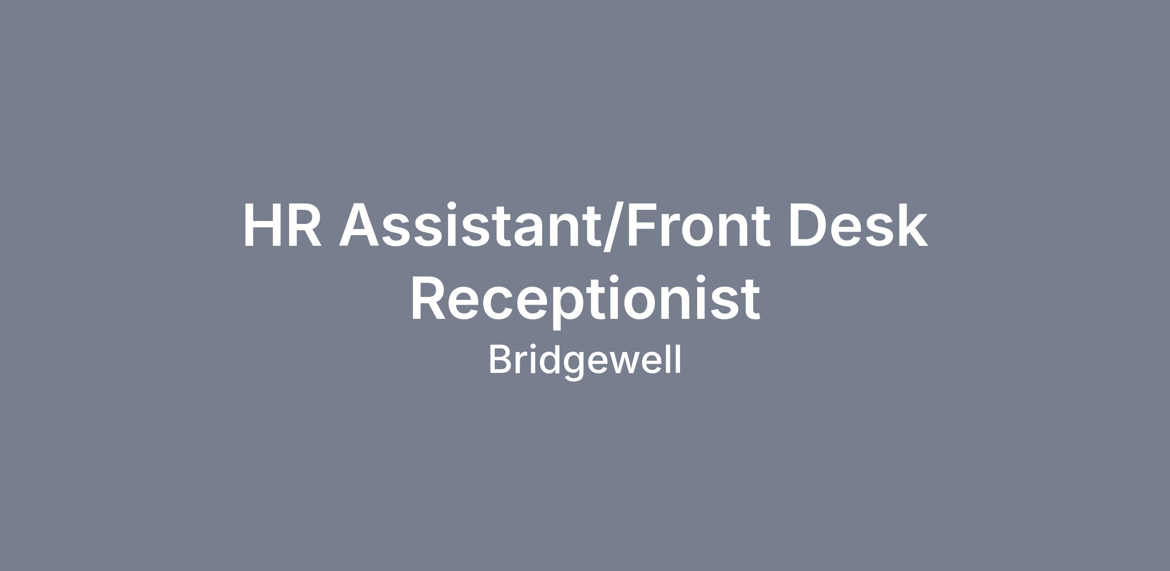 Summary: Supports Bridgewell's mission by providing front desk reception to all visitors who contact the main office by telephone or in person and administrative support to the Human Resources department in various tasks and projects related to employee on-boarding, employee engagement and recognition, scheduling meetings and investigations, reporting and employee files compliance.