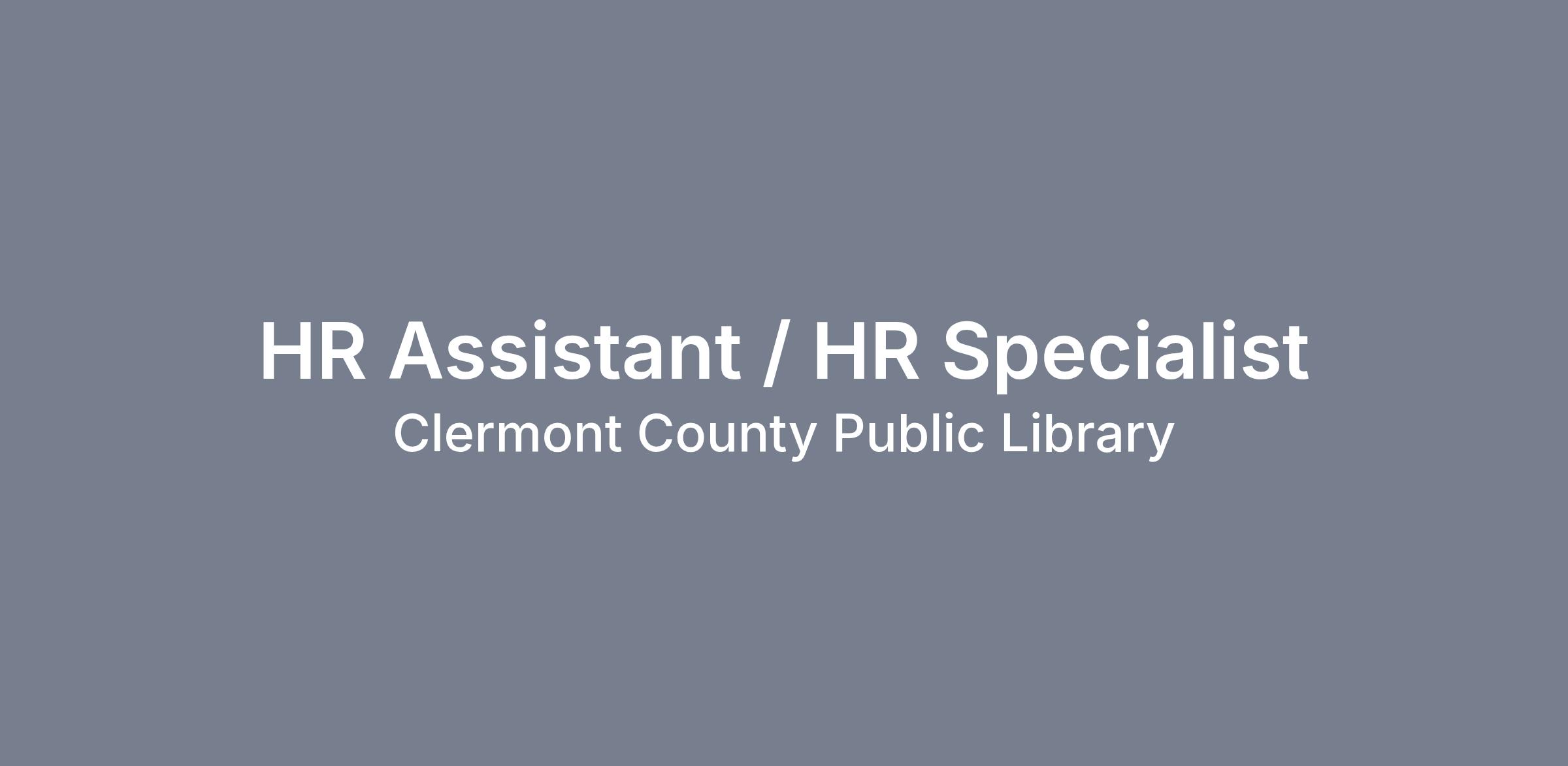Are you detail-oriented, service-driven, and passionate about supporting people and organizational success? Do you enjoy working behind the scenes to ensure processes run smoothly while also being a trusted resource for employees? If so, we invite you to apply for the Human Resources Assistant / Human Resources Specialist position at Clermont County Public Library.