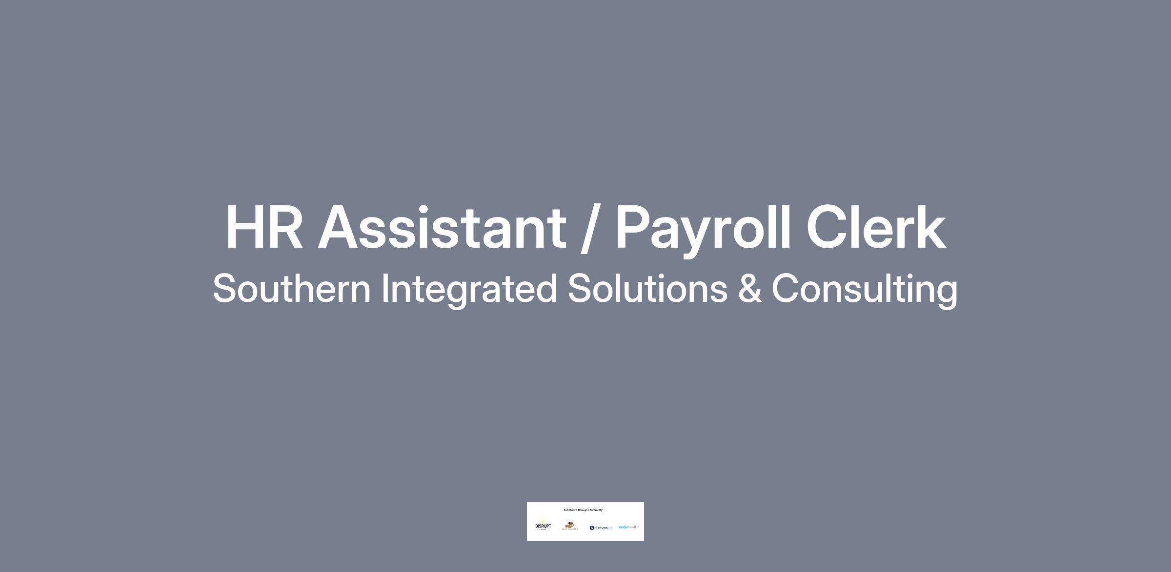 Southern Integrated Solutions and Consulting (SISC) is searching for motivated, organized, and detail oriented Human Resources Assistant / Payroll Clerk to support the Director of HR. This entry-position will assist in a wide range of HR functions including employee records management, onboarding, scheduling, compliance, administrative support, and payroll processing. The successful candidate will demonstrate professionalism, discretion, and a willingness to grow within the field of human resources.