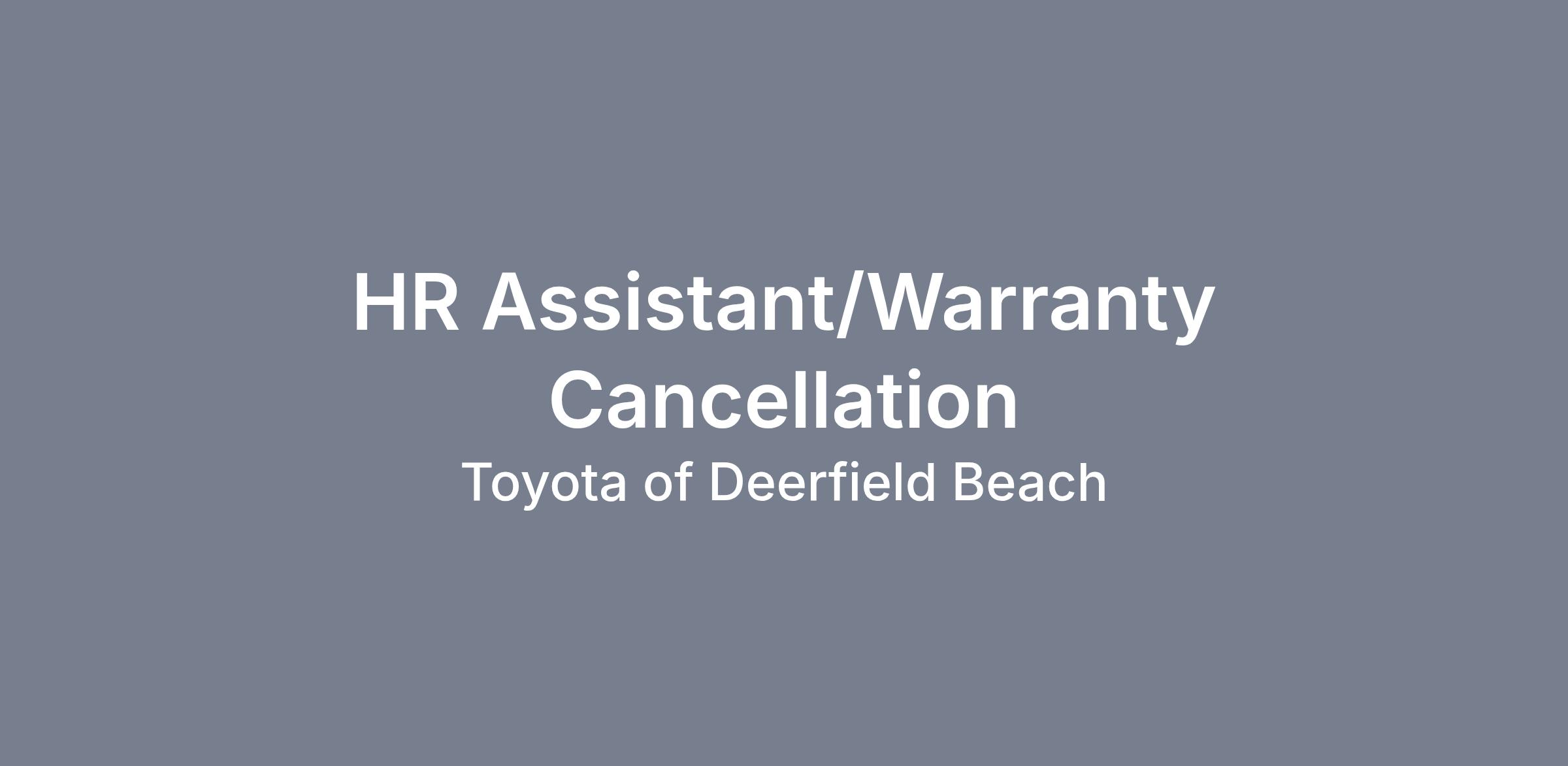 - Helping clean the warranty schedule and add notes on outstanding cancellations