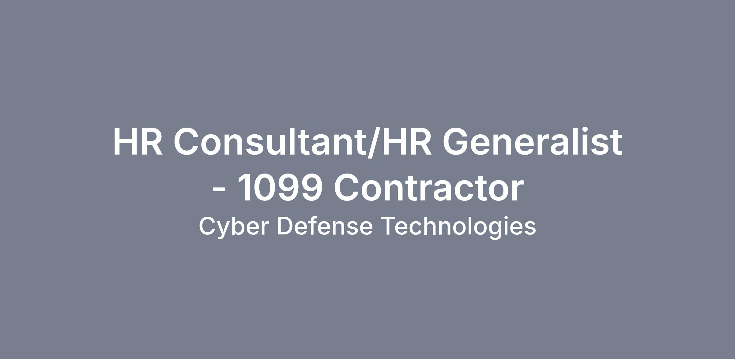 Overview: Cyber Defense Technologies (CDT) is seeking a dynamic and detail-oriented HR Consultant/ HR Generalist (Independent Contractor- 1099, As Needed) to provide human resources support. This independent contractor role will oversees HR operations with a strong emphasis on federal compliance, documentation and audit readiness. This position is remote, local to the Northern Virginia is preferred.