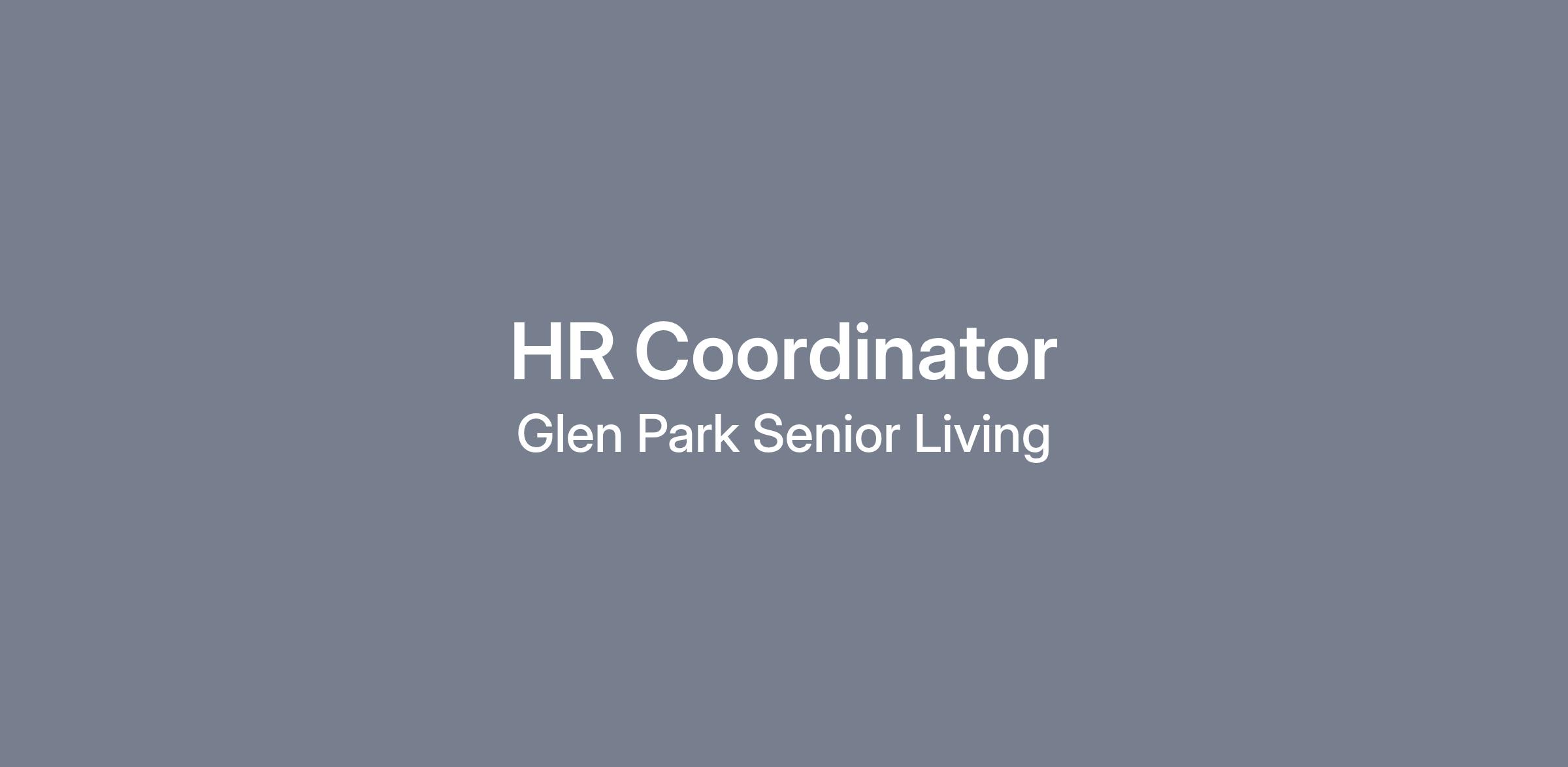 Job Title: Human Resources Coordinator Company: Glen Park Senior Living