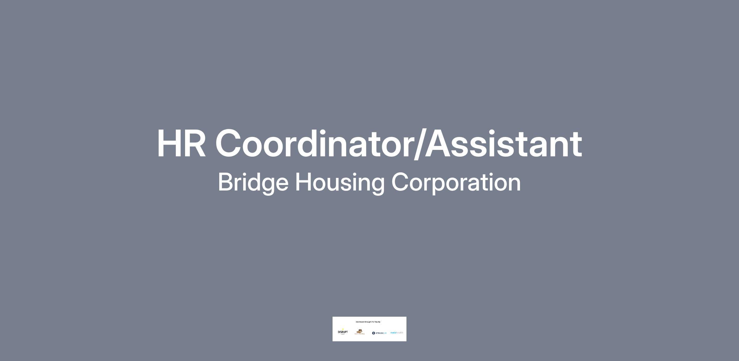 The HR Coordinator assists with day to day operations of the HR department and is responsible for the administration of HR programs for BRIDGE Housing Corporation. Specific areas of focus include managing multiple administrative needs for our employee facing programs such as benefits and perks administration, onboarding, HRIS entries and changes, new hire orientation, offboarding and exits, annual reporting, and file management.