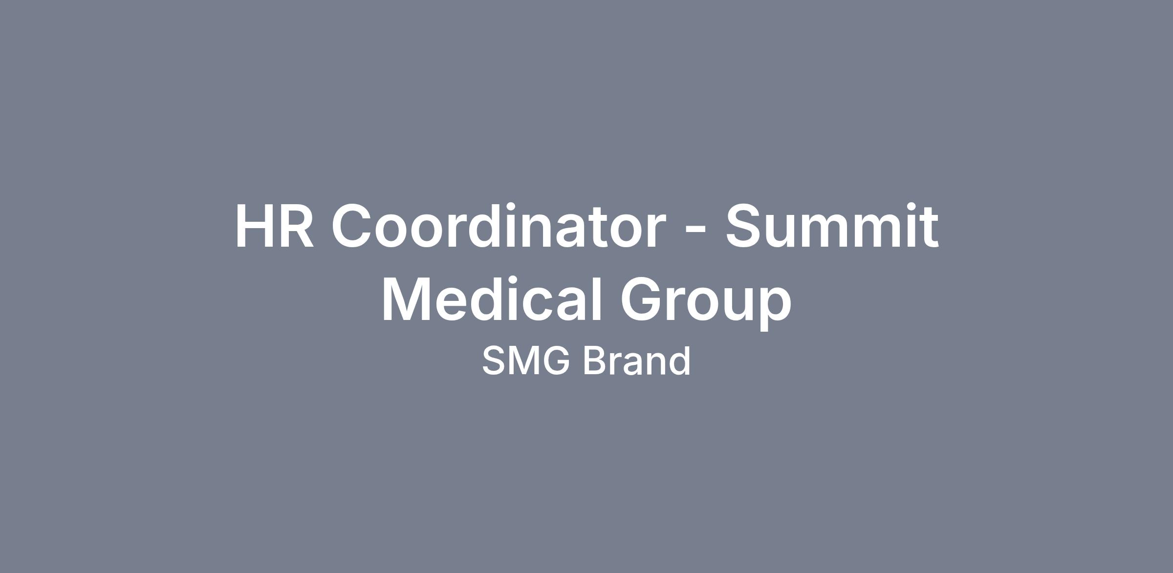 Summit Medical Group is recruiting for a HR Coordinator. This opportunity is a full time hybrid opportunity and 95% remote. The position performs various administrative and clerical functions related to Human Resources.