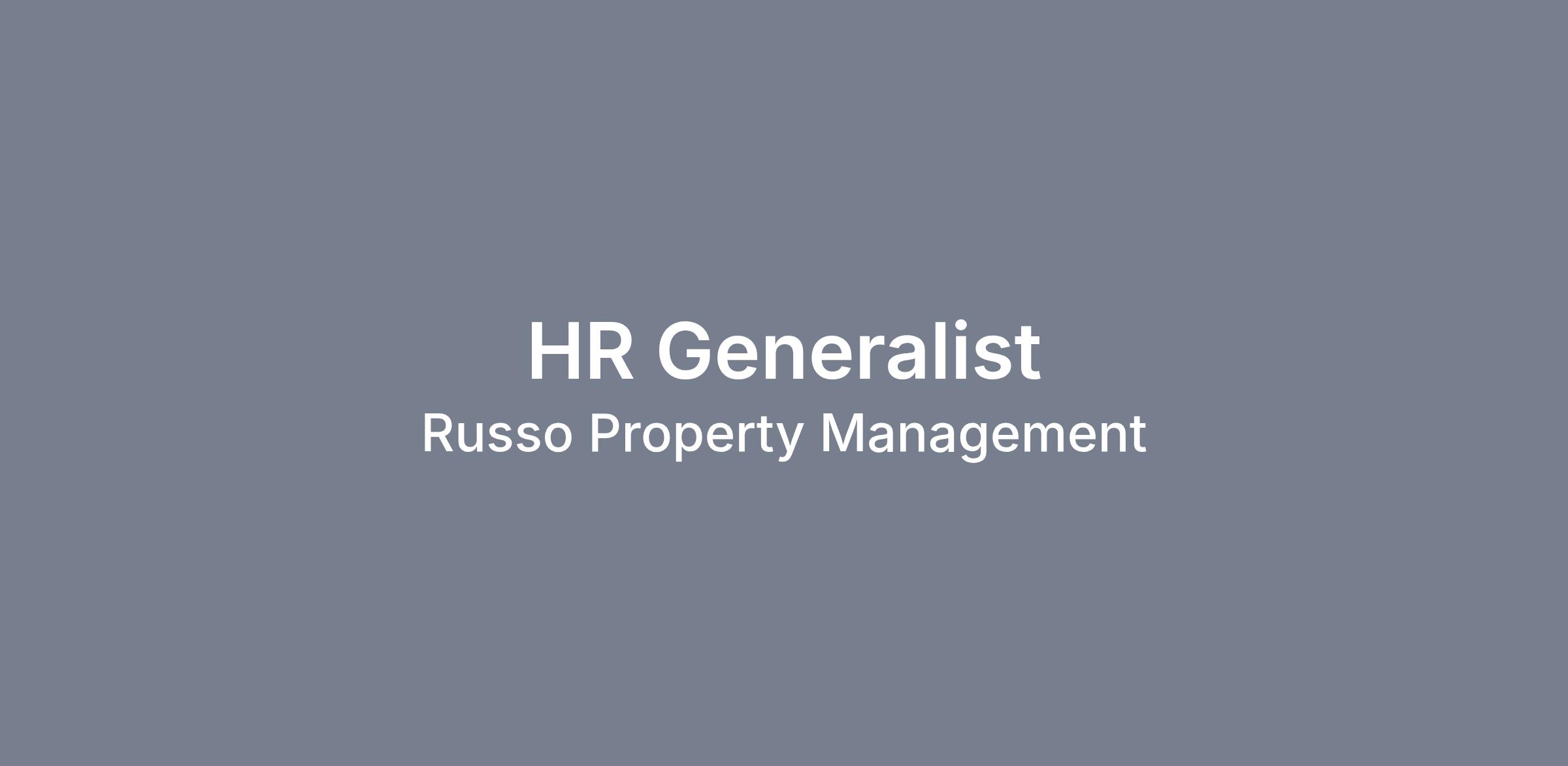 To all recruitment agencies: Please do not forward unsolicited resumes to representatives of Russo Development / Russo Property Management unless you have been requested to work on this position, or other positions with the firm.