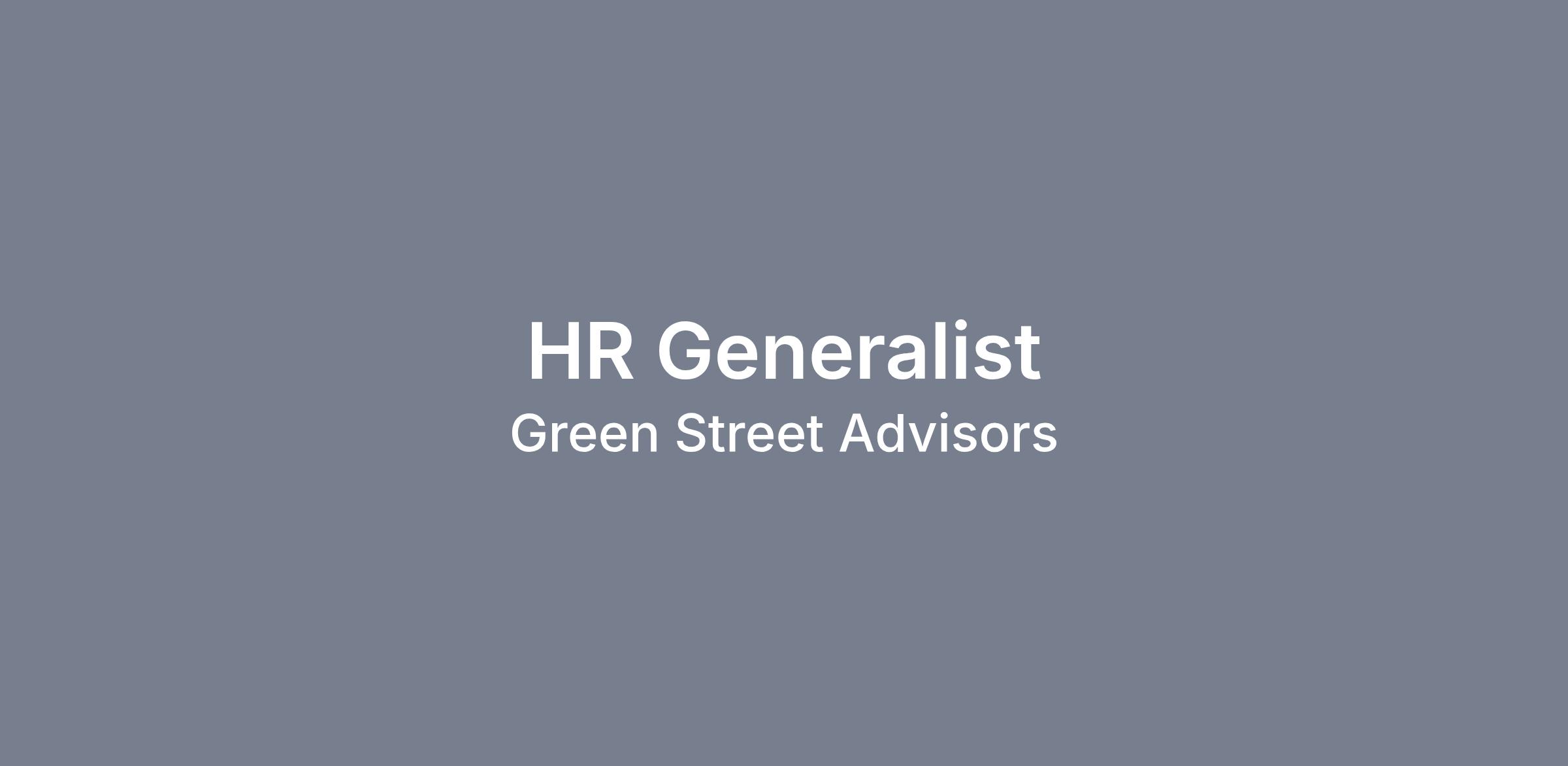 Green Street will not sponsor or transfer employment work visas for this position. Applicants must be currently authorized to work in the United States without the need for visa sponsorship now or in the future.