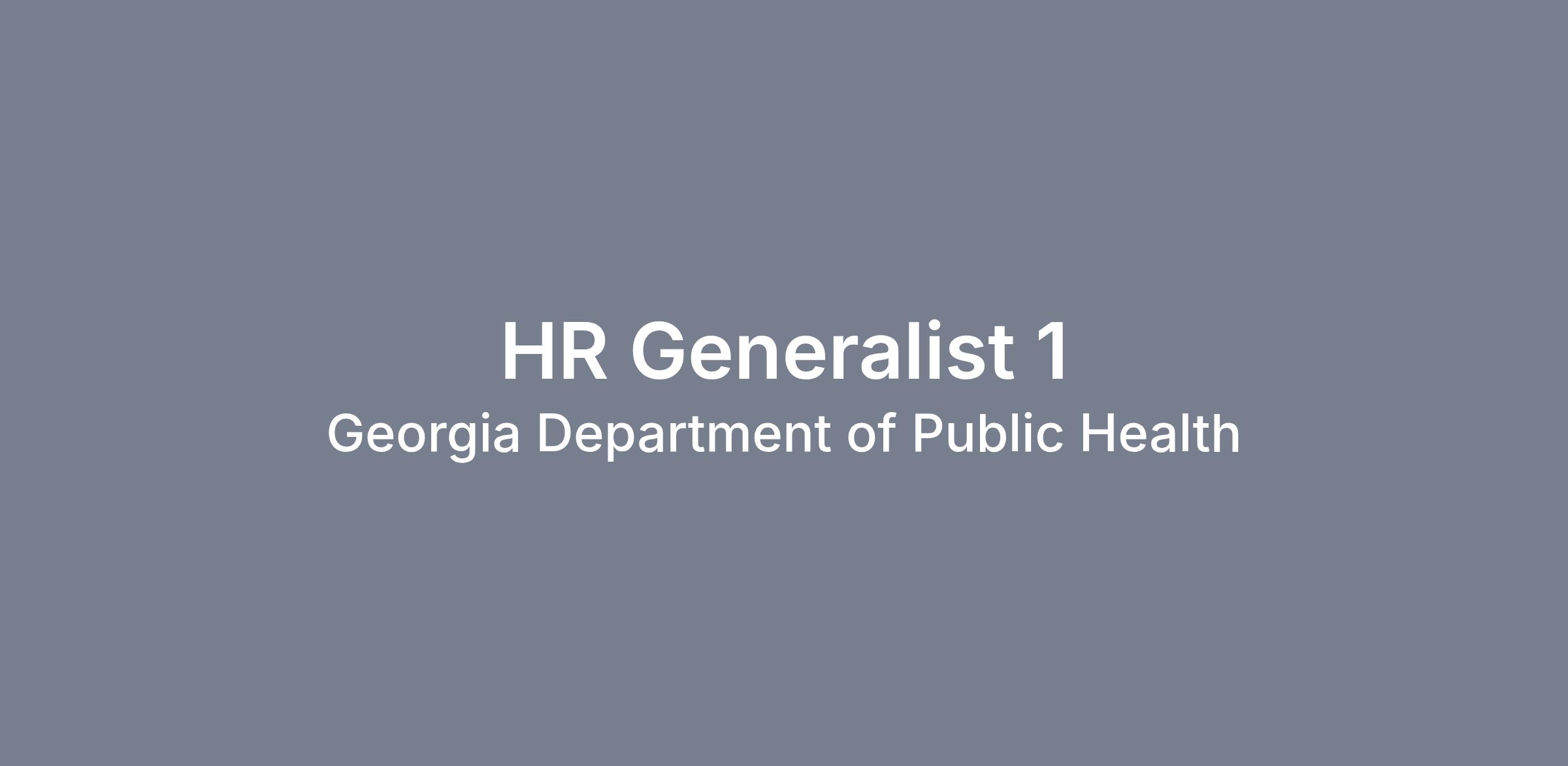 The agency is seeking a highly qualified candidate for the position of HR Generalist 1 within the Fulton County Board of Health in the Human Resources Division.