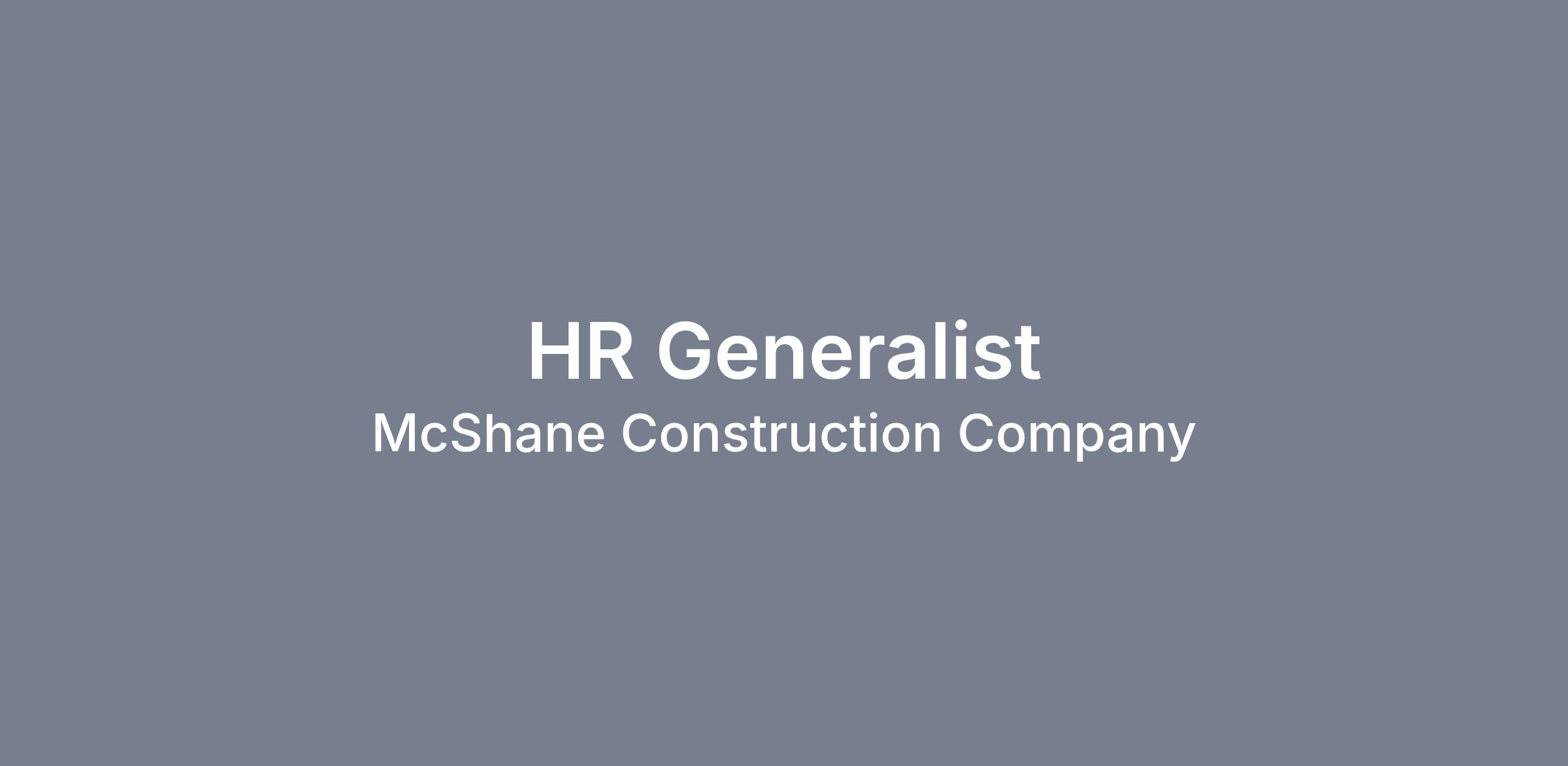 As HR Generalist for The McShane Companies, you will flex your HR expertise and organizational skills to deliver HR services as part of a collaborative, high-performing team. Reporting to the Director of Compensation and Benefits, you will be responsible for compensation and benefits administration, compliance, employee relations, management support, and employee engagement.