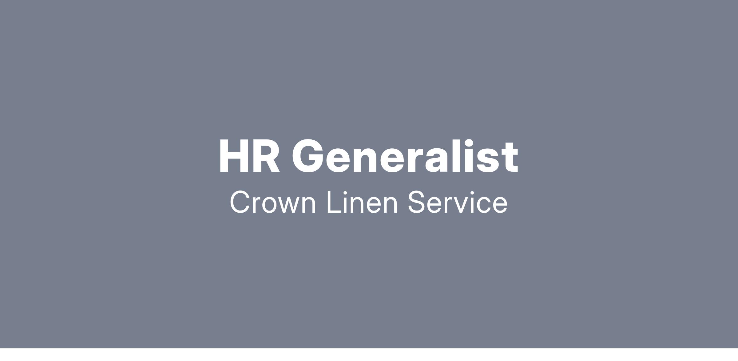 HR Generalist - Join our team at Crown Linen Service, Inc.