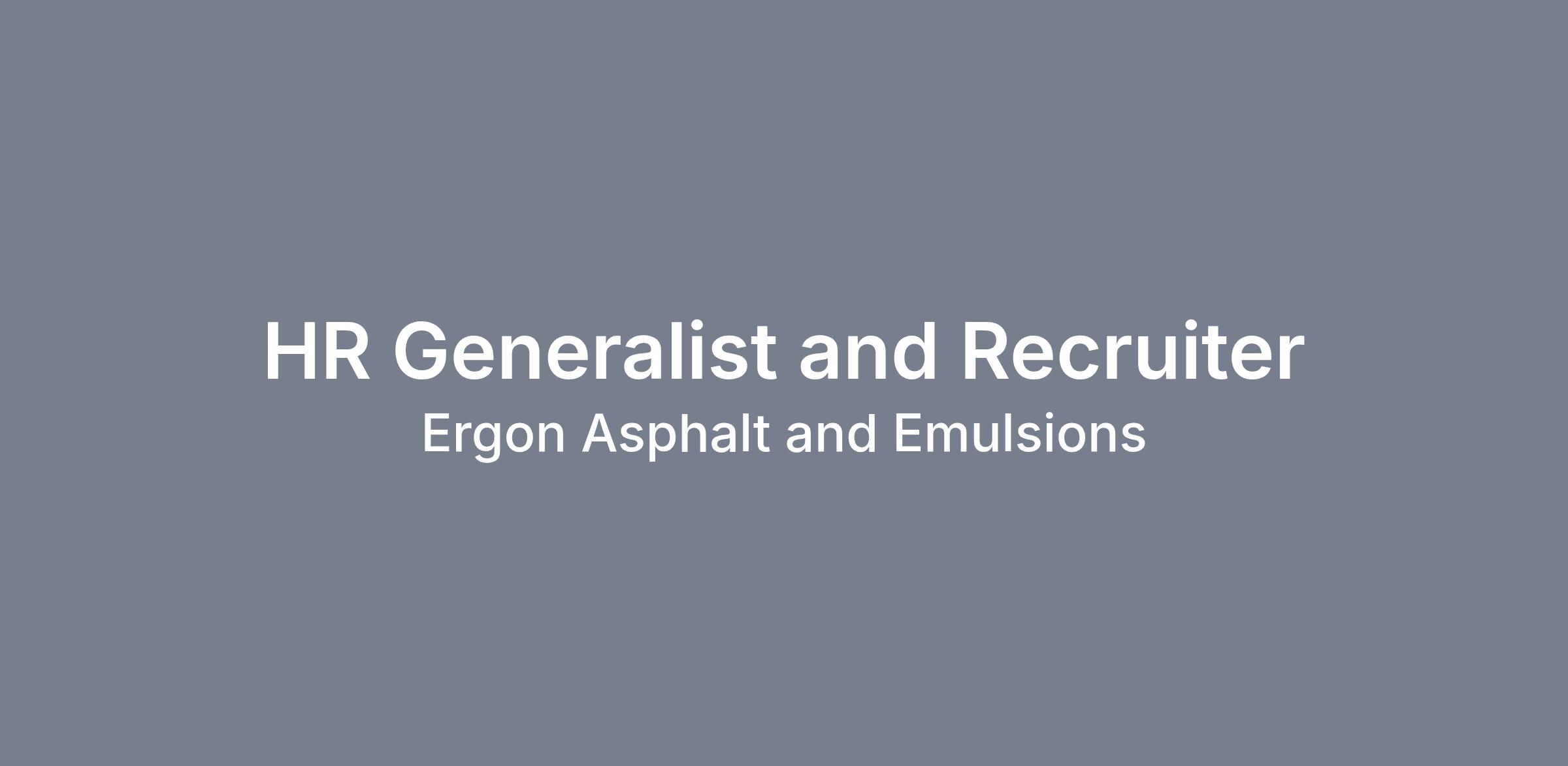 Ergon Inc., is seeking a HR Generalist and Recruiter to join our team. This position will be based in the Roanoke, VA office.