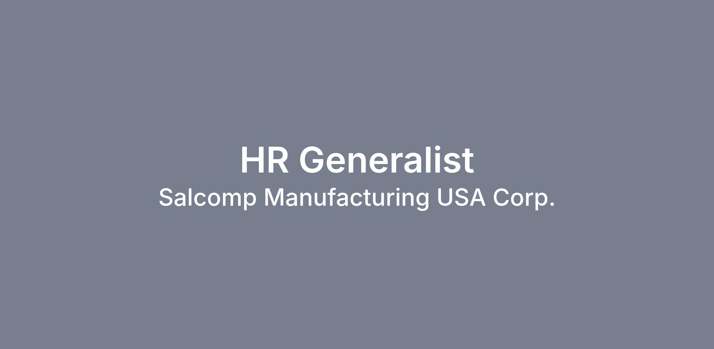 Salcomp Manufacturing USA Corp. is an Equal Opportunity Employer and provides equal employment opportunities to all employees and applicants without regard to protected characteristics under applicable law.