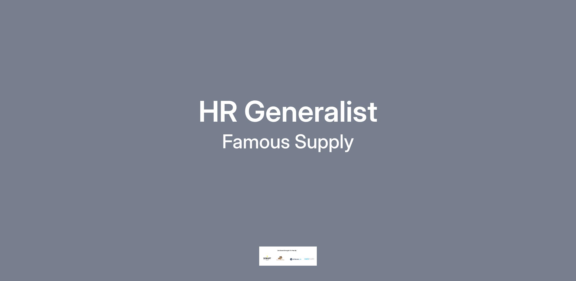 HR Generalists are responsible for collaborating with leaders to build and develop a strong workforce. At Famous, our Associates are the most important part of our organization. Our mission is to create a great workplace filled with people who fit our culture, perform at a high level, and grow. This role supports this vision mainly through recruitment and workforce development.