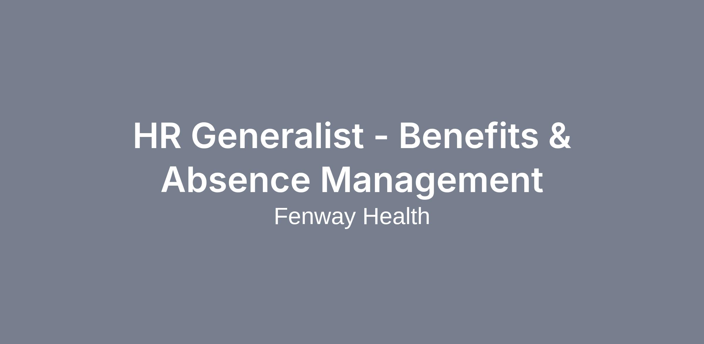 Reporting to the Sr. Human Resources Director, the Human Resources Generalist – Benefits & Absence Management is a key contributor to the Human Resources Department. They are driven to provide excellent customer service and partner with the team to achieve outstanding results. They manage Fenway Health’s benefits and absence management programs which includes the oversight and administration of: health, voluntary, paid-time-off and retirement benefit programs, employee leaves of absence (e.g.: FMLA, MA-PFML, STD/LTD, etc.), accommodations under Title I of the ADA and Workers’ Compensation; respond to employees with benefit or leave related questions or issues; and assists with the development of associated HR policies. The HR Generalist also helps with special projects and initiatives.