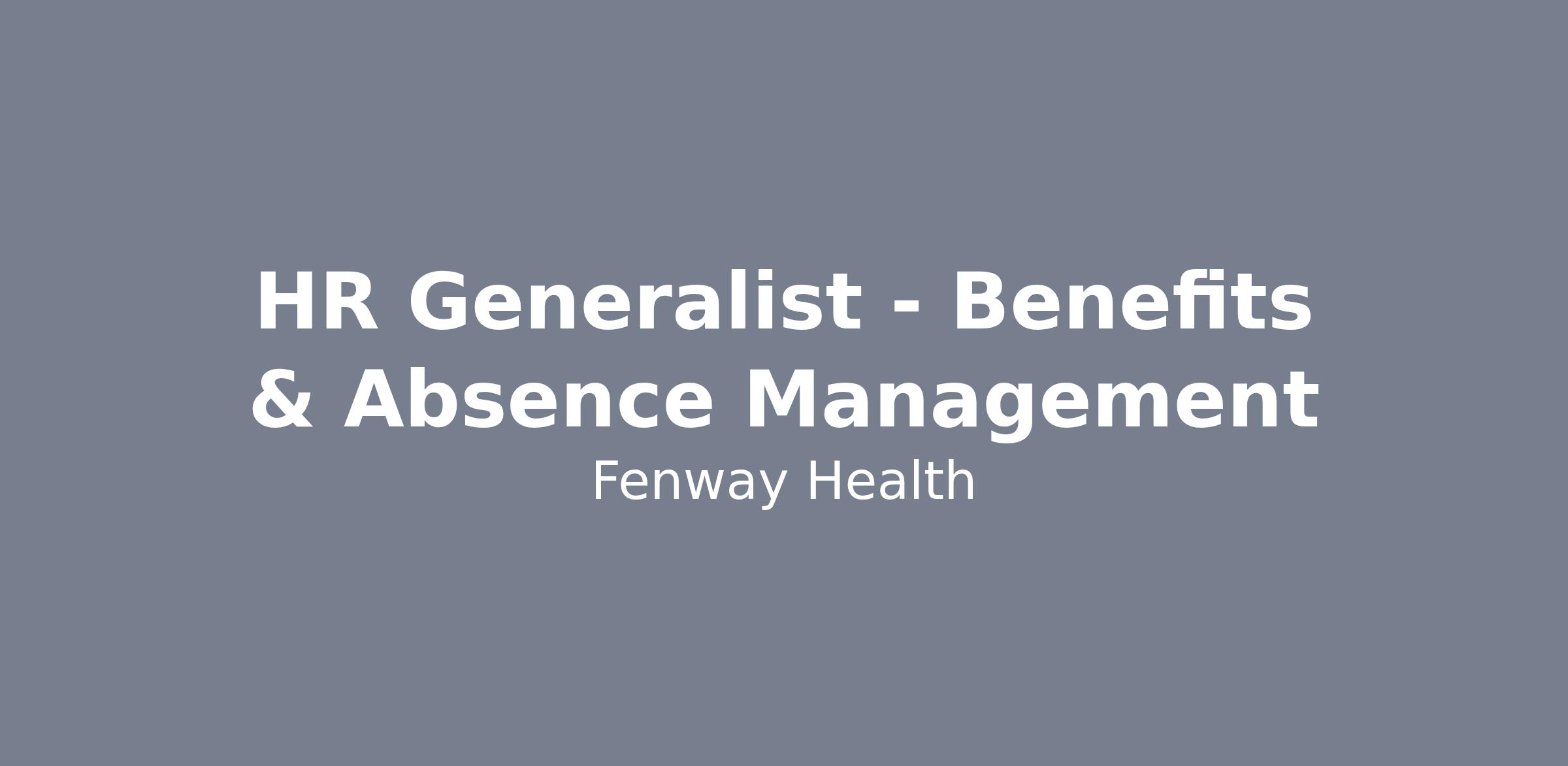 Reporting to the Sr. Human Resources Director, the Human Resources Generalist – Benefits & Absence Management is a key contributor to the Human Resources Department. They are driven to provide excellent customer service and partner with the team to achieve outstanding results. They manage Fenway Health’s benefits and absence management programs which includes the oversight and administration of: health, voluntary, paid-time-off and retirement benefit programs, employee leaves of absence (e.g.: FMLA, MA-PFML, STD/LTD, etc.), accommodations under Title I of the ADA and Workers’ Compensation; respond to employees with benefit or leave related questions or issues; and assists with the development of associated HR policies. The HR Generalist also helps with special projects and initiatives.
