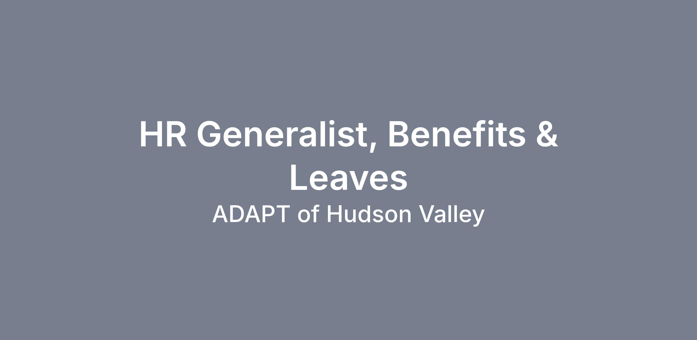 Reporting to the Director of Human Resources this position is a key component in the Human Resources operations for Benefits and Leaves activity. This position requires maintaining an excellent working relationship with administrative and program departments. Frequent daily contact with department managers is required to maintain the smooth flow of information necessary to support the identified HR responsibilities. Provide excellent customer service to staff and assist staff with their questions.