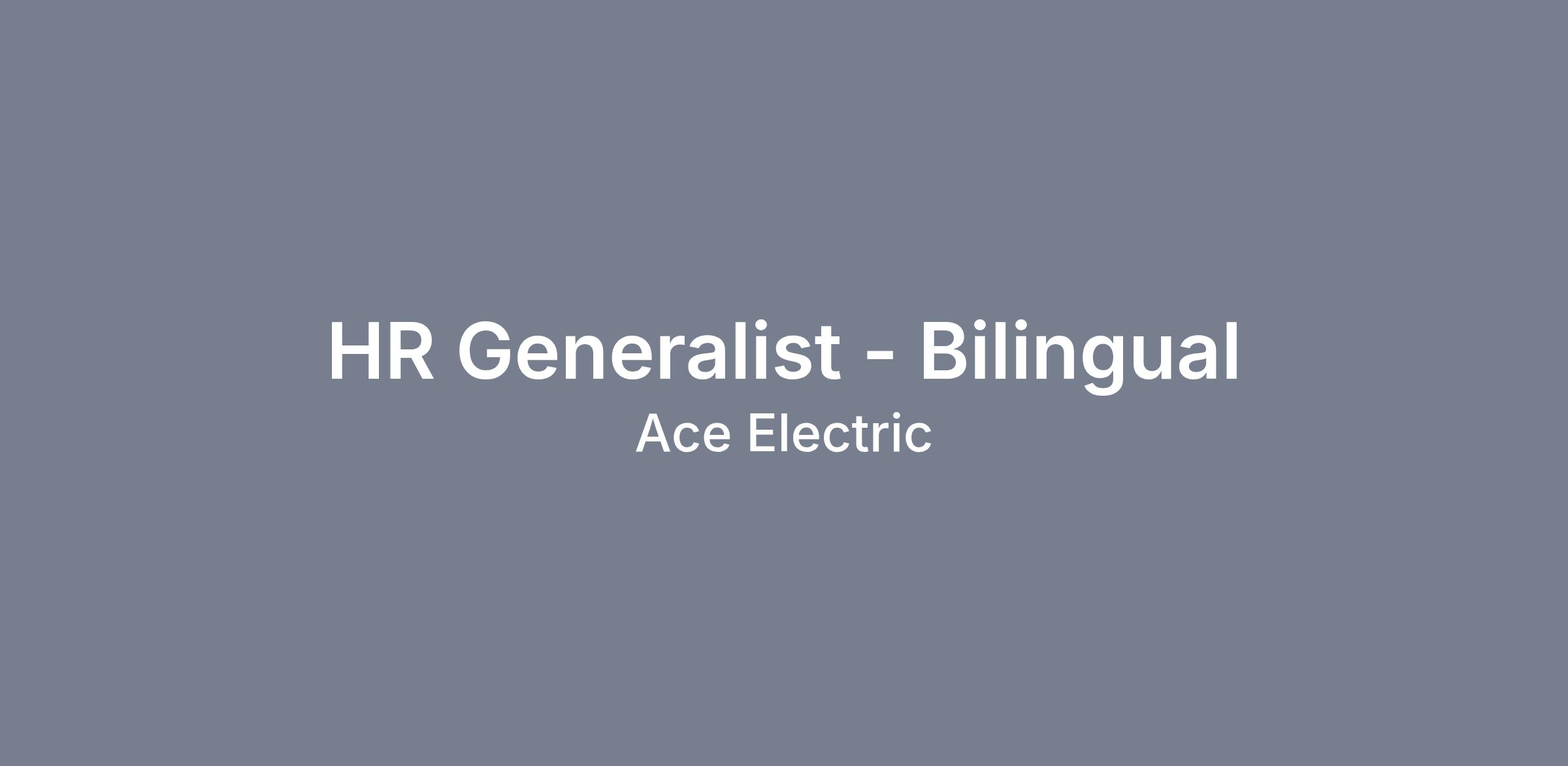 The Human Resources Generalist is responsible for general clerical functions of the Human Resource (HR) Department for all Divisions of Ace Electric, Inc. and Ace Technologies, LLC. These duties include, but are not limited to, reception, processing onboarding paperwork, and filing.
