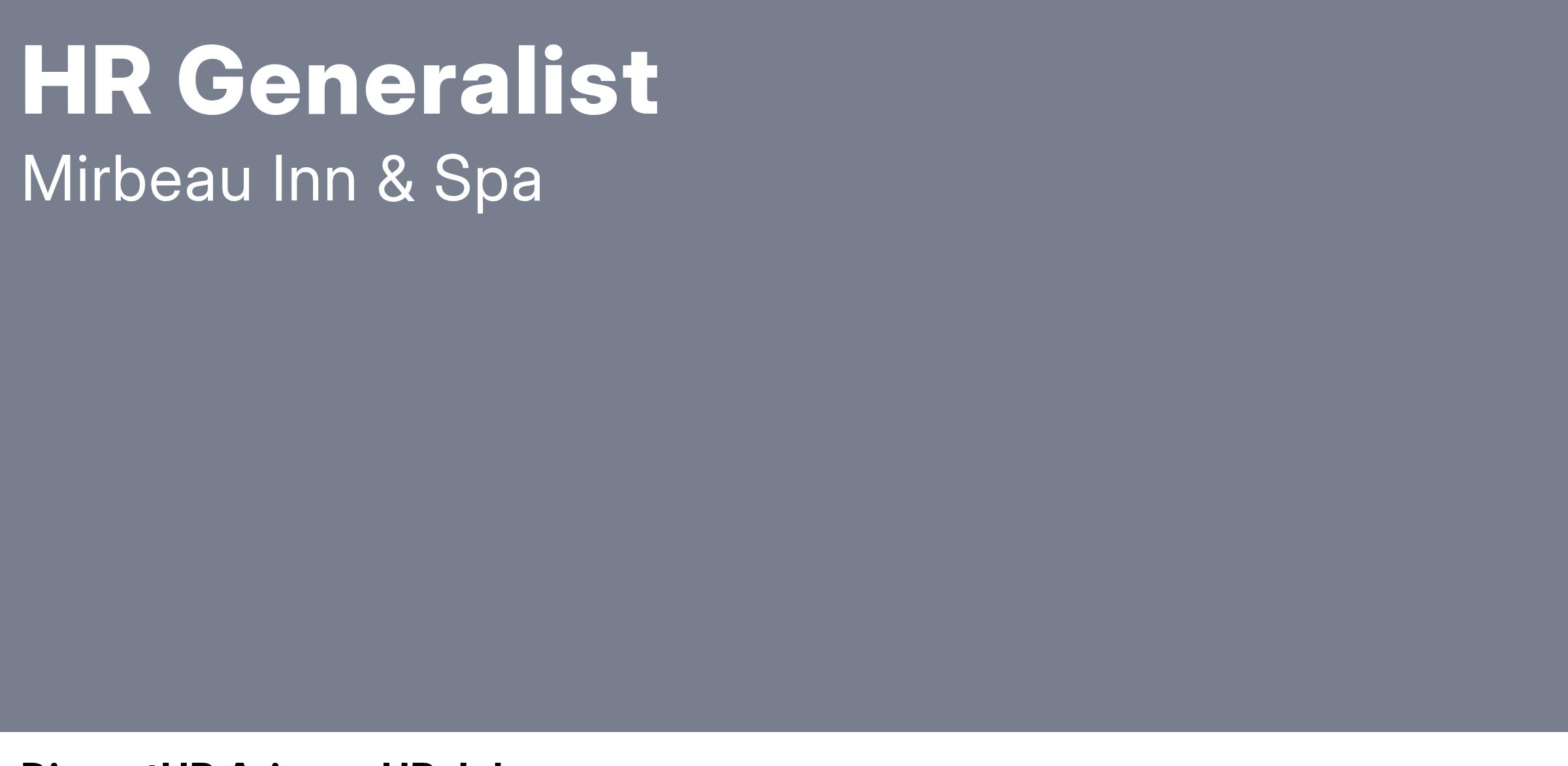 Mirbeau Hospitality Services is seeking an experienced HR Generalist to join its Human Resources team!