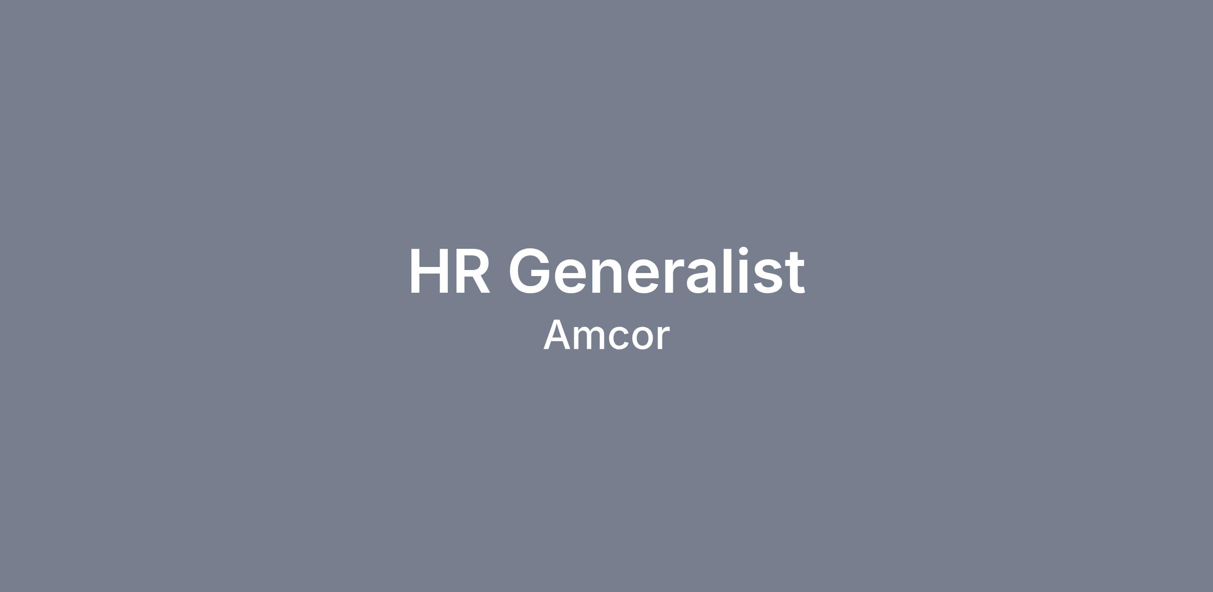 This position performs Human Resource Generalist responsibilities at the Amcor, Inc. facility in Louisville Kentucky. The successful candidate will assist in the completion of organizational responsibilities in all functional areas within Human Resources to include but not limited to employee relations, organizational development, communications, payroll, compensation and benefits, training, team learning and development, succession planning, retention and staffing.