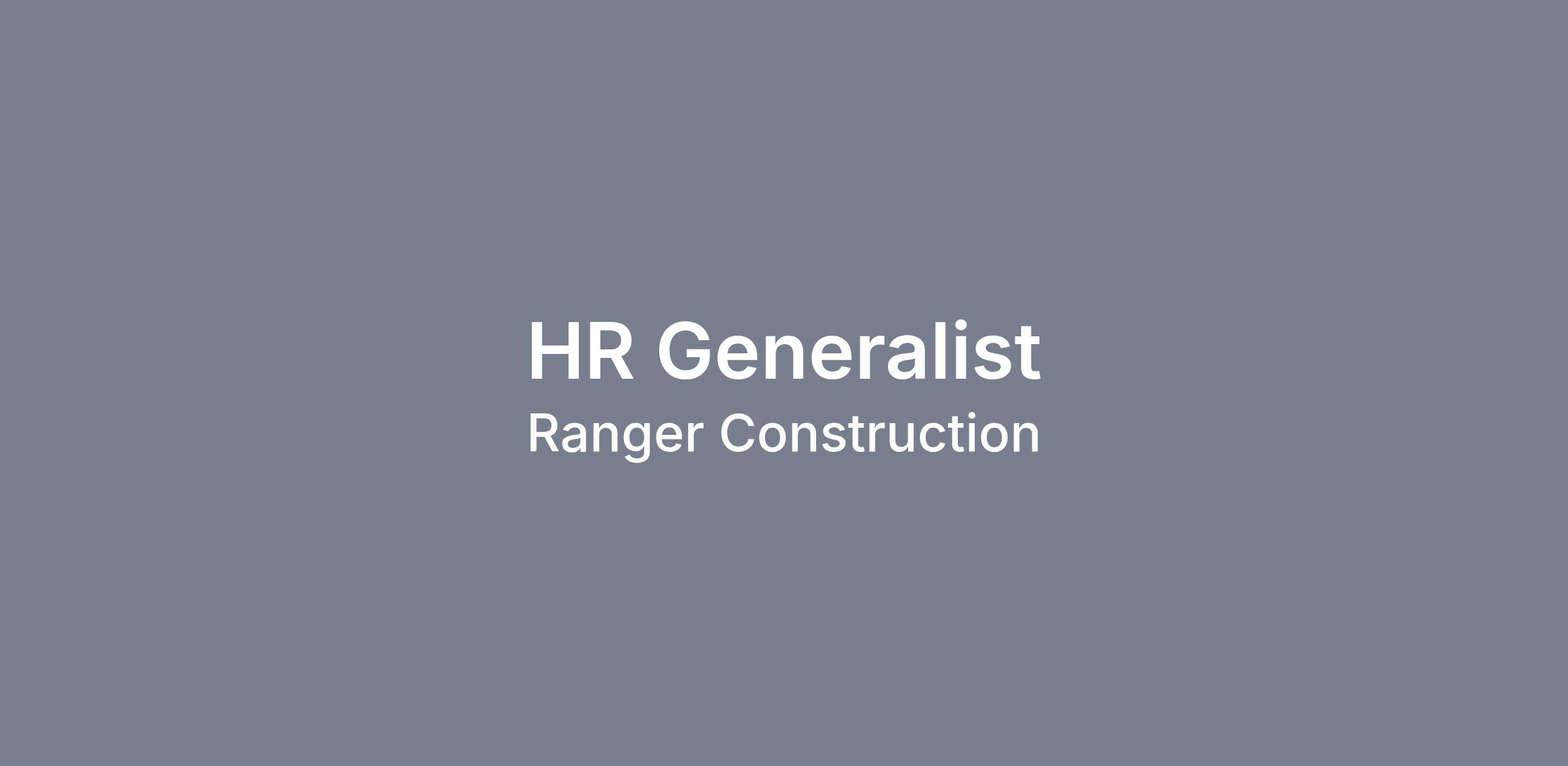 Ranger is looking for a Human Resource Generalist to join our team in our Fairfield office.. The Human Resource Generalist is responsible for various functions of the Human Resource department, including talent, compensation, benefits, leave, reporting, and administration of company policies.