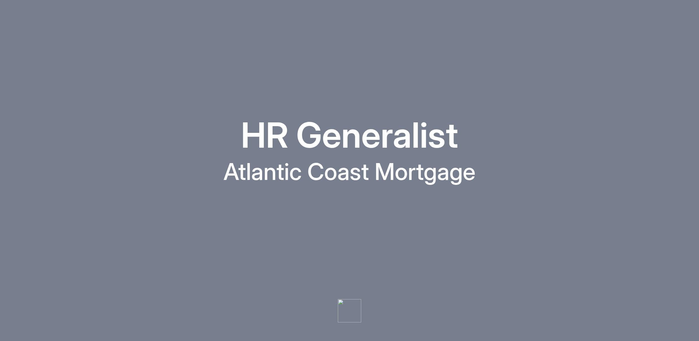 Atlantic Coast Mortgage is seeking an HR Generalist. This position is responsible for supporting all day-to-day functions of the Human Resources Department and participating in HR-related projects and initiatives as assigned. This position requires full-time, on-site work at our corporate headquarters in Fairfax, Virginia.