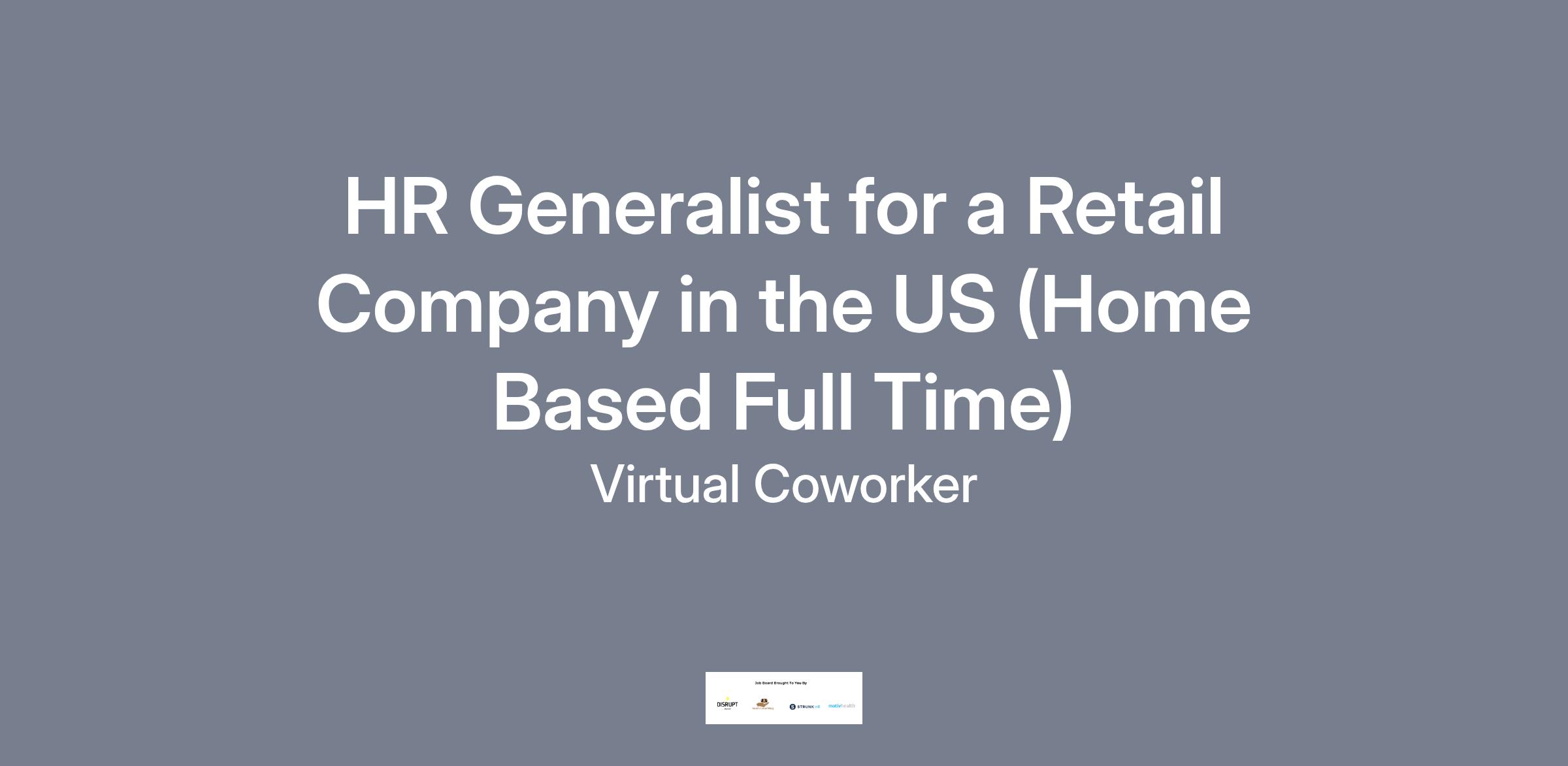 https:\/\/www.linkedin.com\/company\/virtual\-coworker"}],"isMobile":false,"iframe":"true","jobType":"Full time","applyName":"Apply Now!","zsoid":"8208015","FontFamily":"Arial, Helvetica, sans\-serif","jobOtherDetails":[{"fieldLabel":"Job Category","uitype":2,"value":"HR\/Recruitment"},{"fieldLabel":"Work Schedule","uitype":1,"value":"Monday to Friday, 9:00am to 5:00pm Eastern Standard Time"},{"fieldLabel":"Hours Per Day","uitype":2,"value":"Full Time â 8 hours per day"},{"fieldLabel":"Industry","uitype":2,"value":"Retail and E\-Commerce"},{"fieldLabel":"Client Location","uitype":2,"value":"USA"},{"fieldLabel":"Work Location","uitype":1,"value":"Home Based \- Philippines"},{"fieldLabel":"City","uitype":1,"value":"New York"},{"fieldLabel":"State\/Province","uitype":1,"value":"New York"},{"fieldLabel":"Zip\/Postal Code","uitype":1,"value":"10029"}],"headerName":"HR Generalist for a Retail Company in the US (Home Based Full Time)","widgetId":"147741000000390320","isJobBoard":"false","userId":"147741000000027001","attachArr":[],"customTemplate":"3","isCandidateLoginEnabled":true,"jobId":"147741000066771260","FontSize":"12","googleIndexUrl":"https:\/\/virtualcoworker.zohorecruit.com\/recruit\/ViewJob.na?digest=mYhLPVmsdoeEYzvtj4AKba8O1DzDx7f2BDrmgUM6srM\-&embedsource=Google","location":"New York","embedsource":"CareerSite","logoId":"idwop0ece2fcac21a443ba16938fb832bdc3b"}