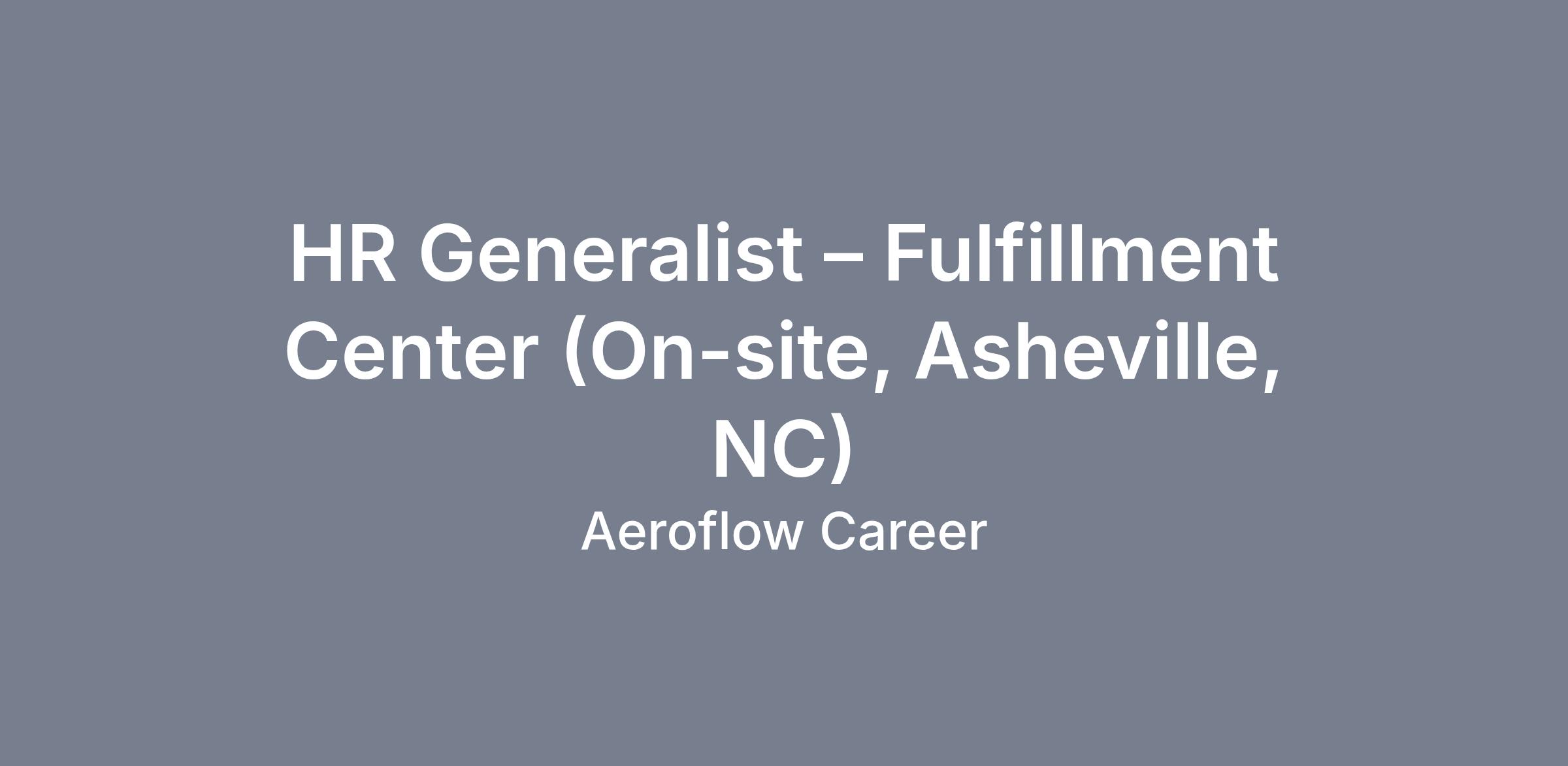 Aeroflow Health – HR Generalist – Fulfillment Center (On-site, Asheville, NC)