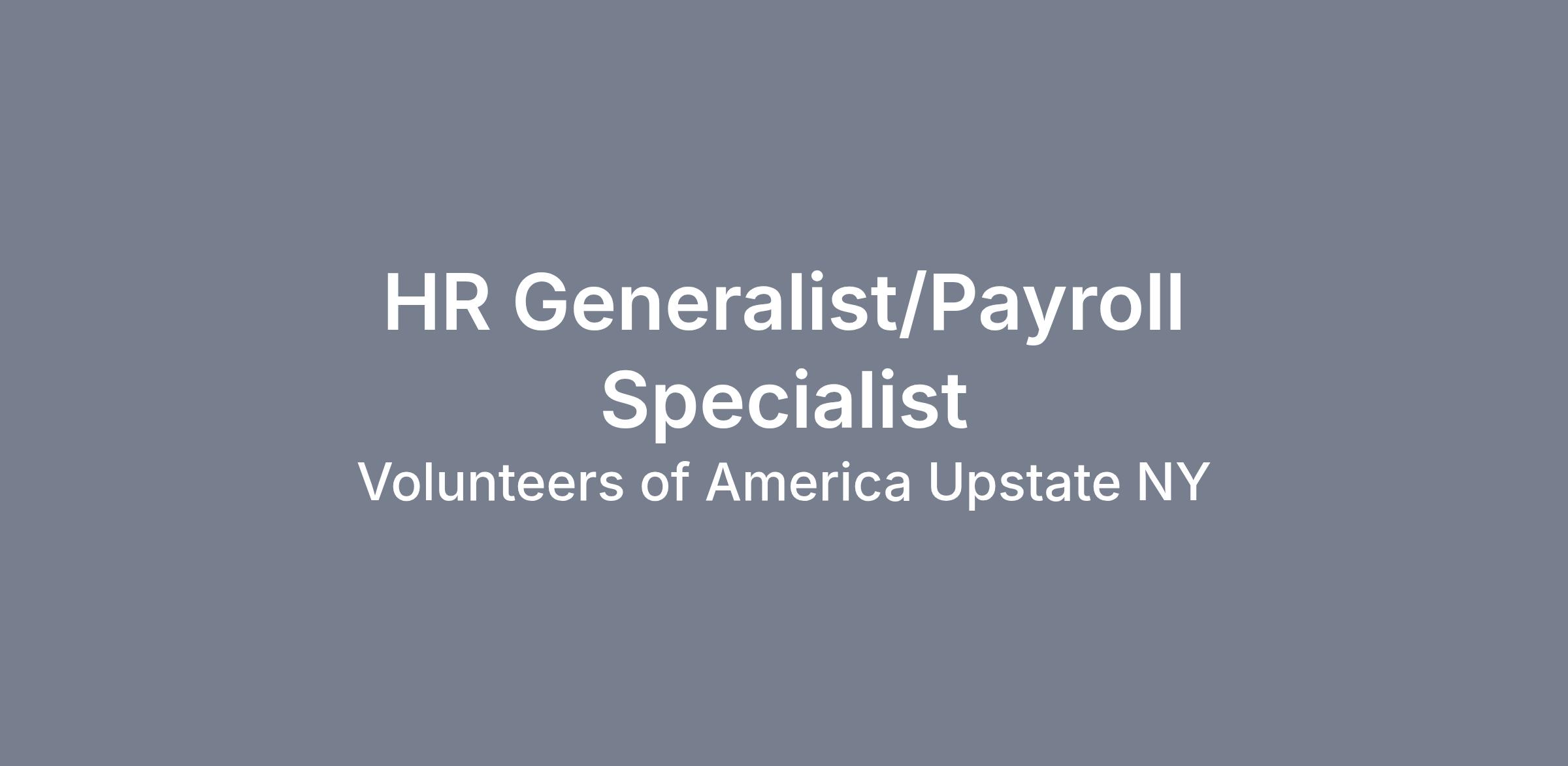The Human Resources Generalist will oversee and assist with a variety of full life cycle HR tasks in accordance with Volunteers of America of Upstate New York’s values.