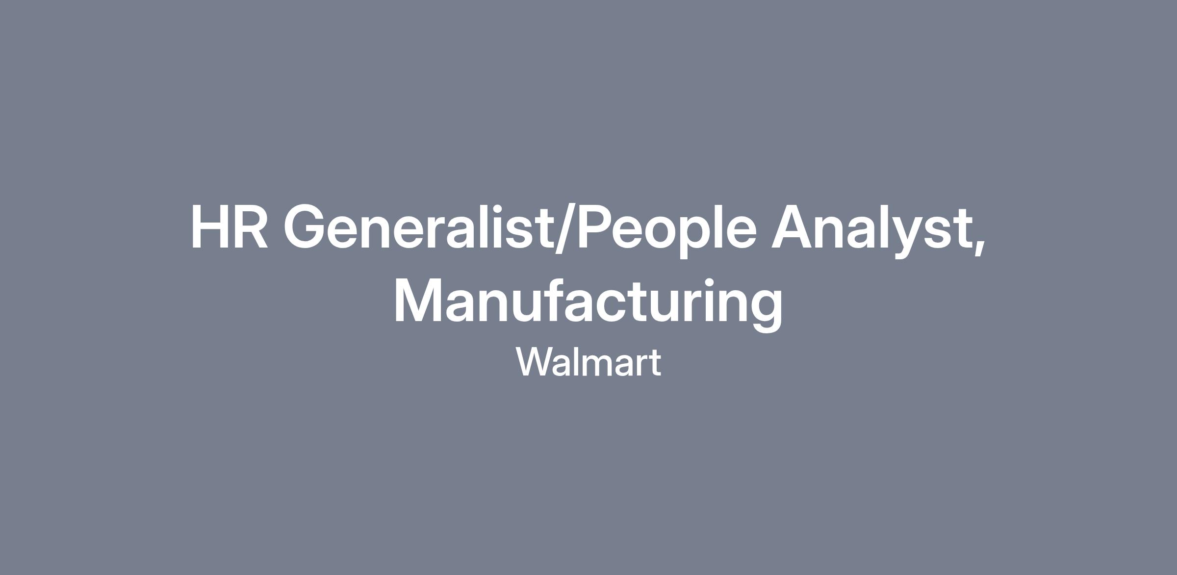 The Walmart Manufacturing Dairy Plant in Fort Wayne, Indiana, one of the largest milk processing facilities in the United States, plays a critical role in delivering fresh, high-quality dairy products to families every day. Our operation combines scale, innovation, and a commitment to our associates. We are seeking an experienced HR Generalist/People Analyst to support a dynamic manufacturing workforce and help drive a positive, high-performing workplace. This role offers the opportunity to partner closely with leadership, influence associate experience, and contribute to an operation that makes a meaningful impact to our customers in 6 states.