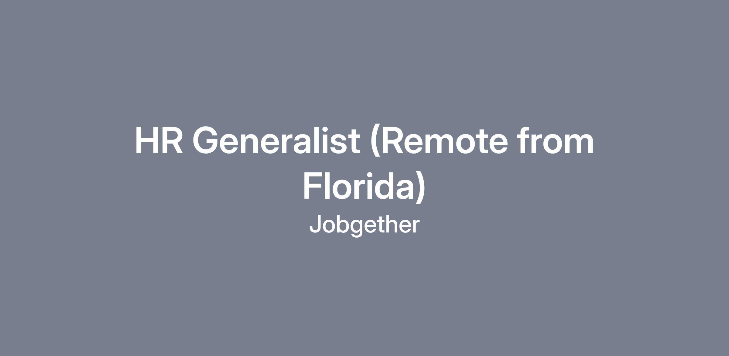 This position is posted by Jobgether on behalf of a partner company. We are currently looking for a HR Generalist in Florida.