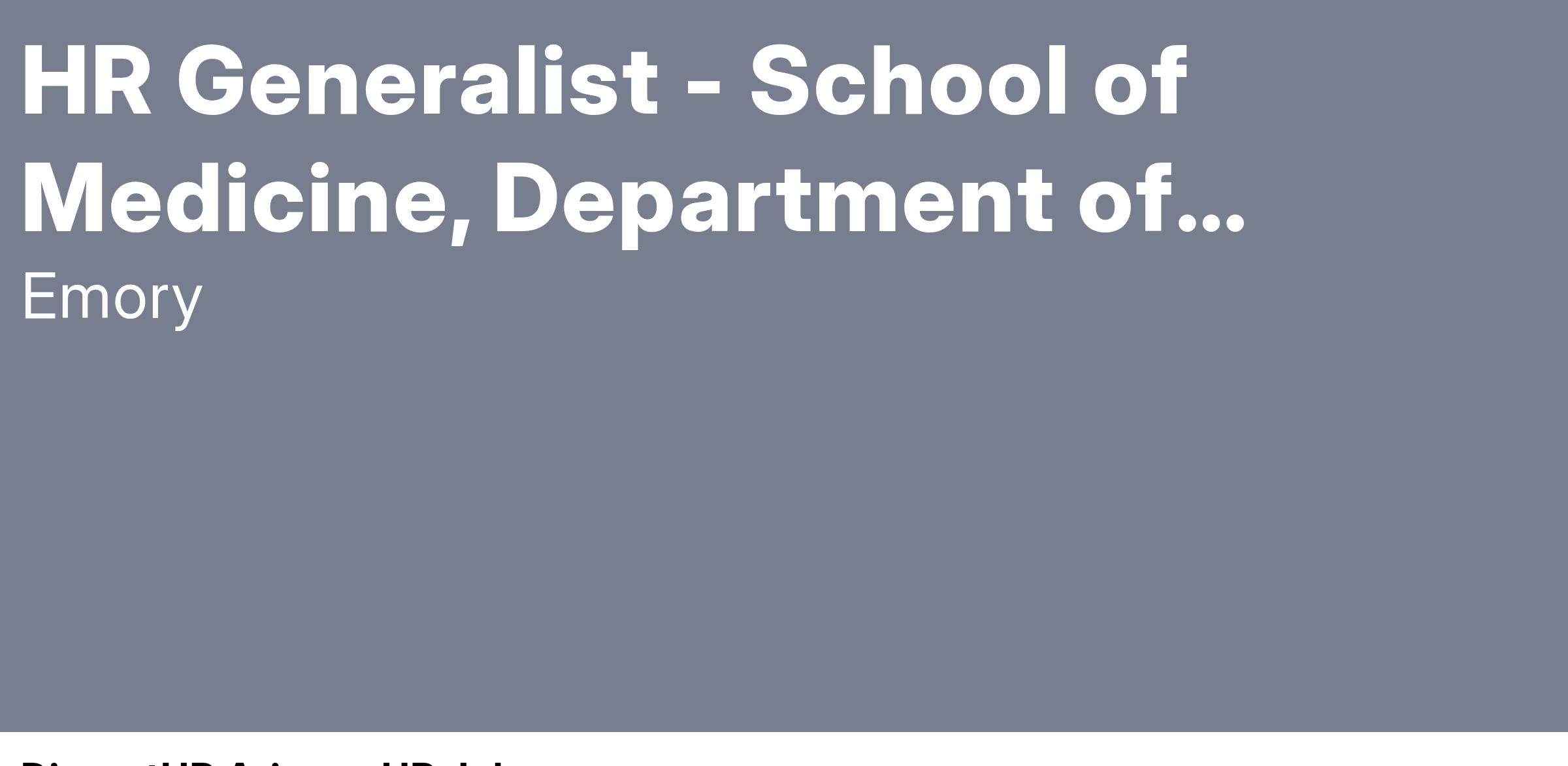 The Department of Gynecology & Obstetrics is seeing a Human Resources Generalist. This role serves as a generalist in support of various aspects of the human resources (HR) operation for the department in the School of Medicine (SOM).