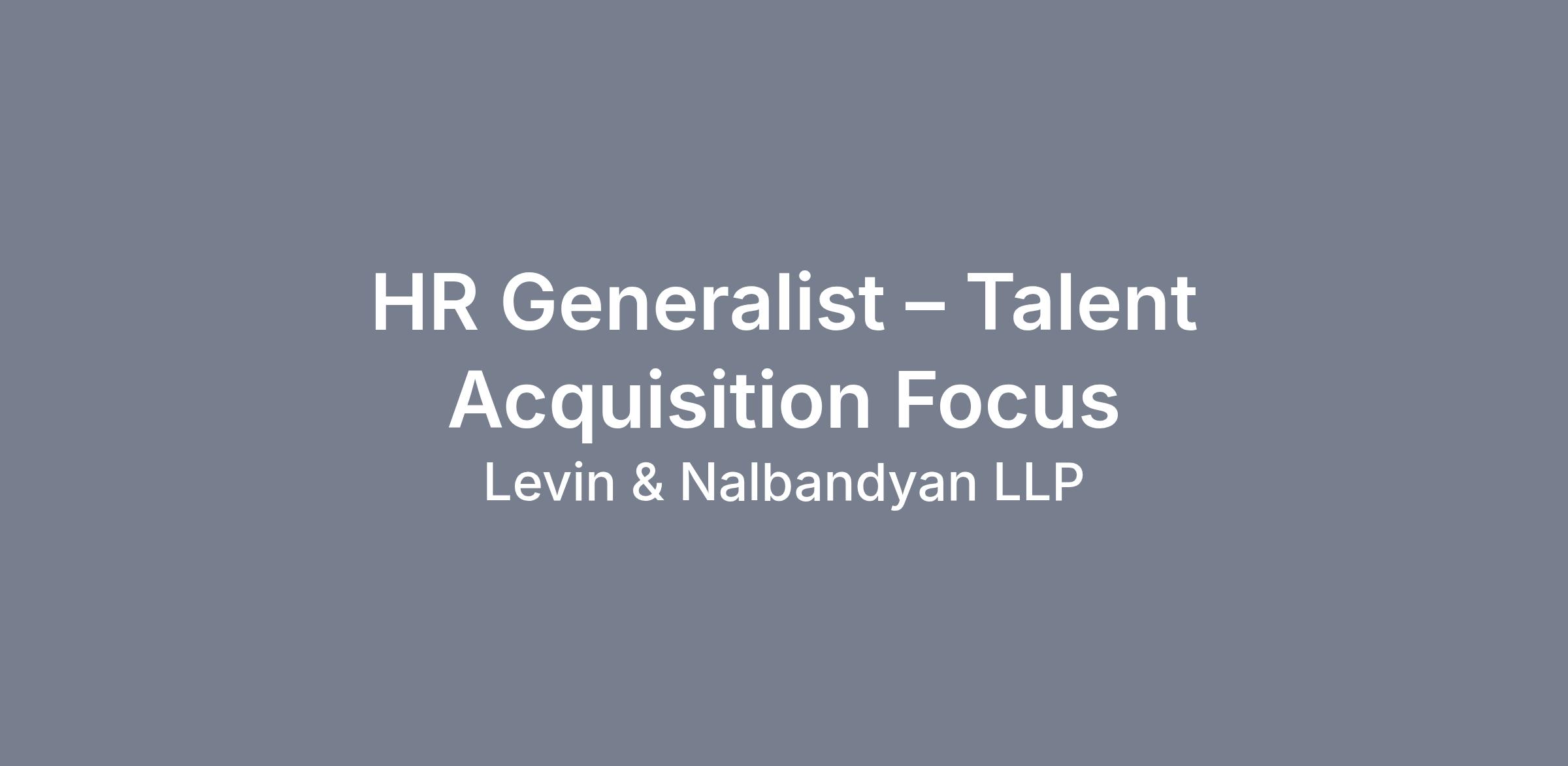 Levin & Nalbandyan, LLP is seeking a highly organized, strategic, and execution-driven HR Generalist with a primary focus on Talent Acquisition to support our continued firm growth.